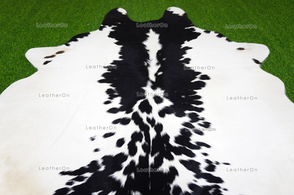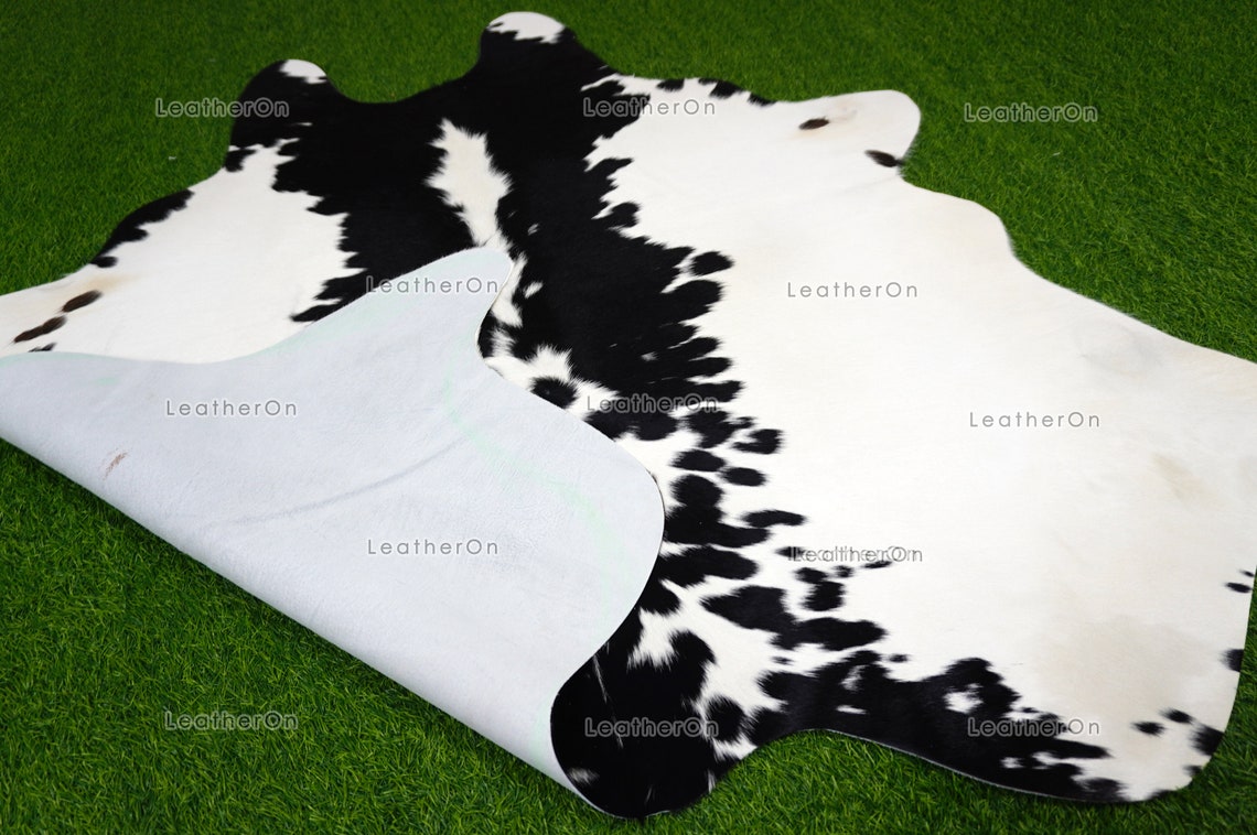 Black White Small (4.5 X 4.7 ft.) Exact As Photo Cowhide Rug | 100% Natural Cowhide Area Rug | Real Hair-on Leather Cowhide Rug | C737