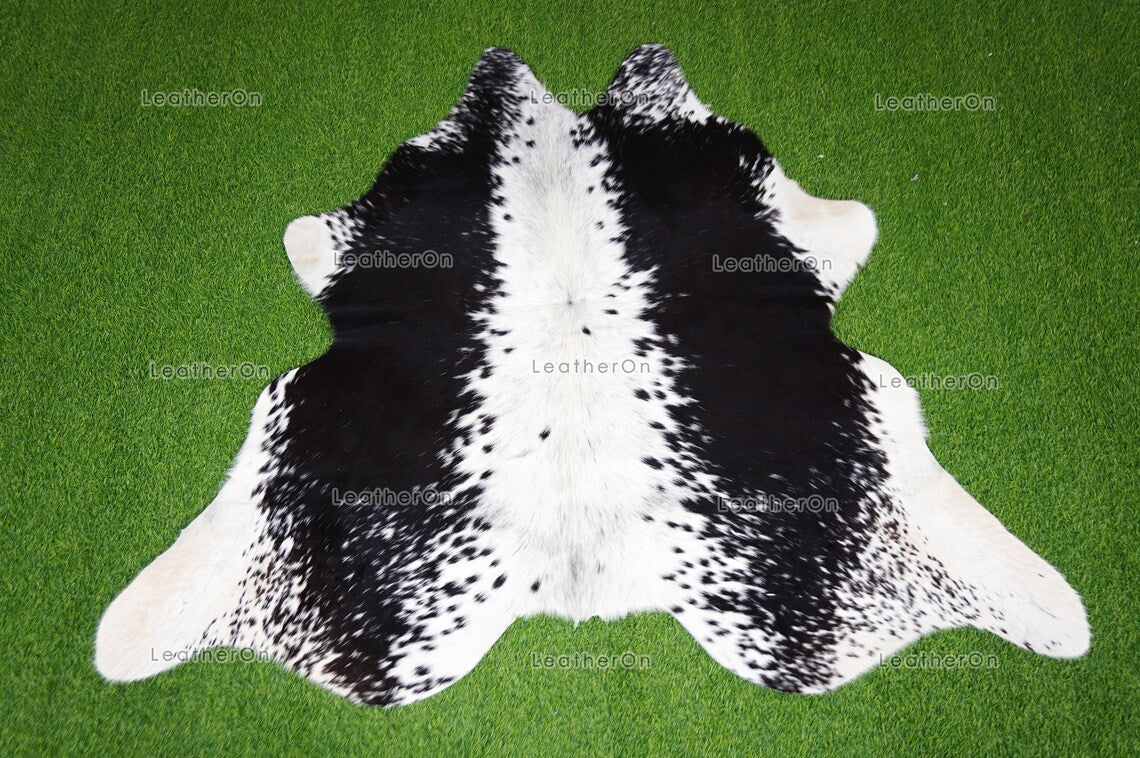 Black White Small (5 X 4 ft.) Exact As Photo Cowhide Rug | 100% Natural Cowhide Area Rug | Real Hair-on Leather Cowhide Rug | C802