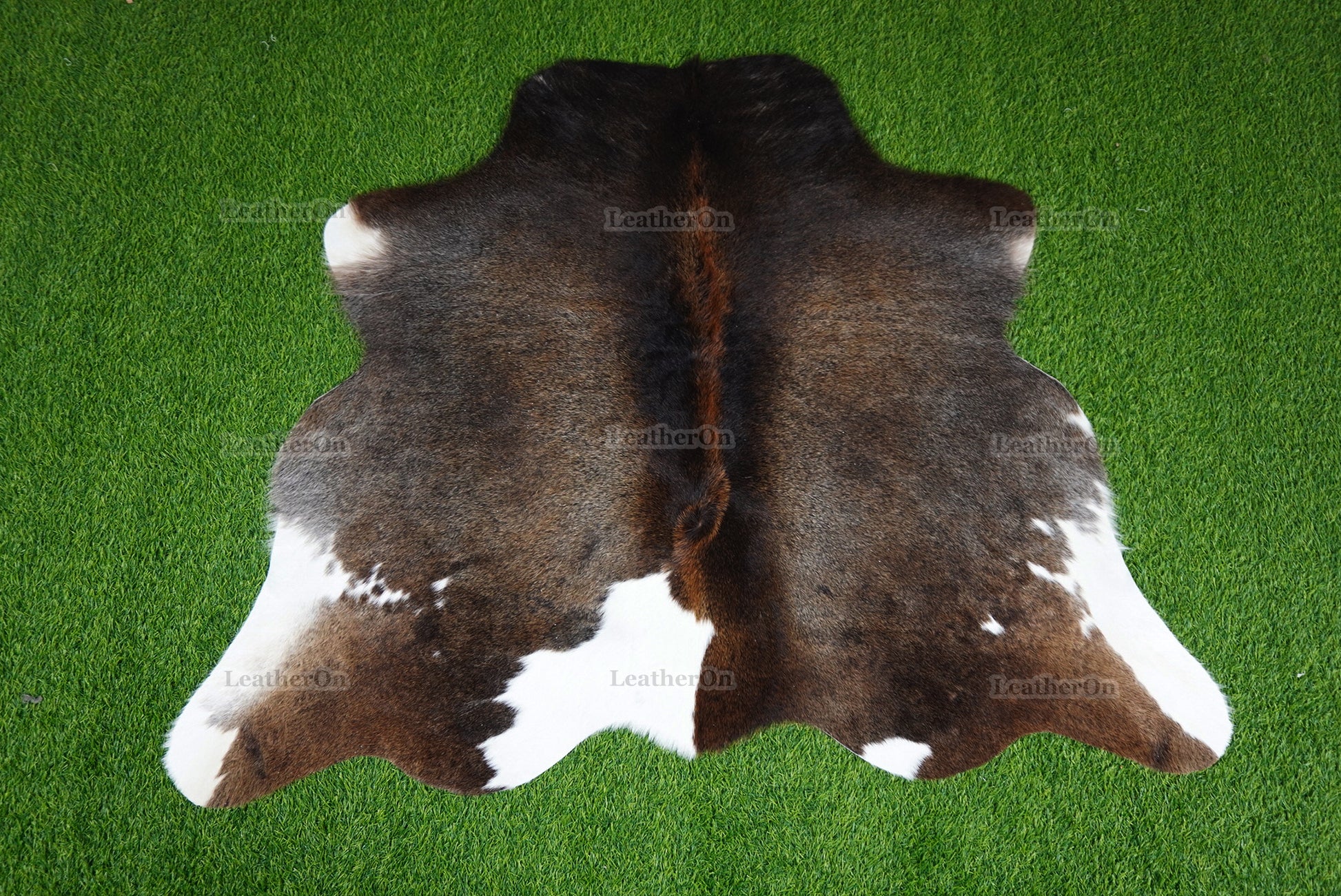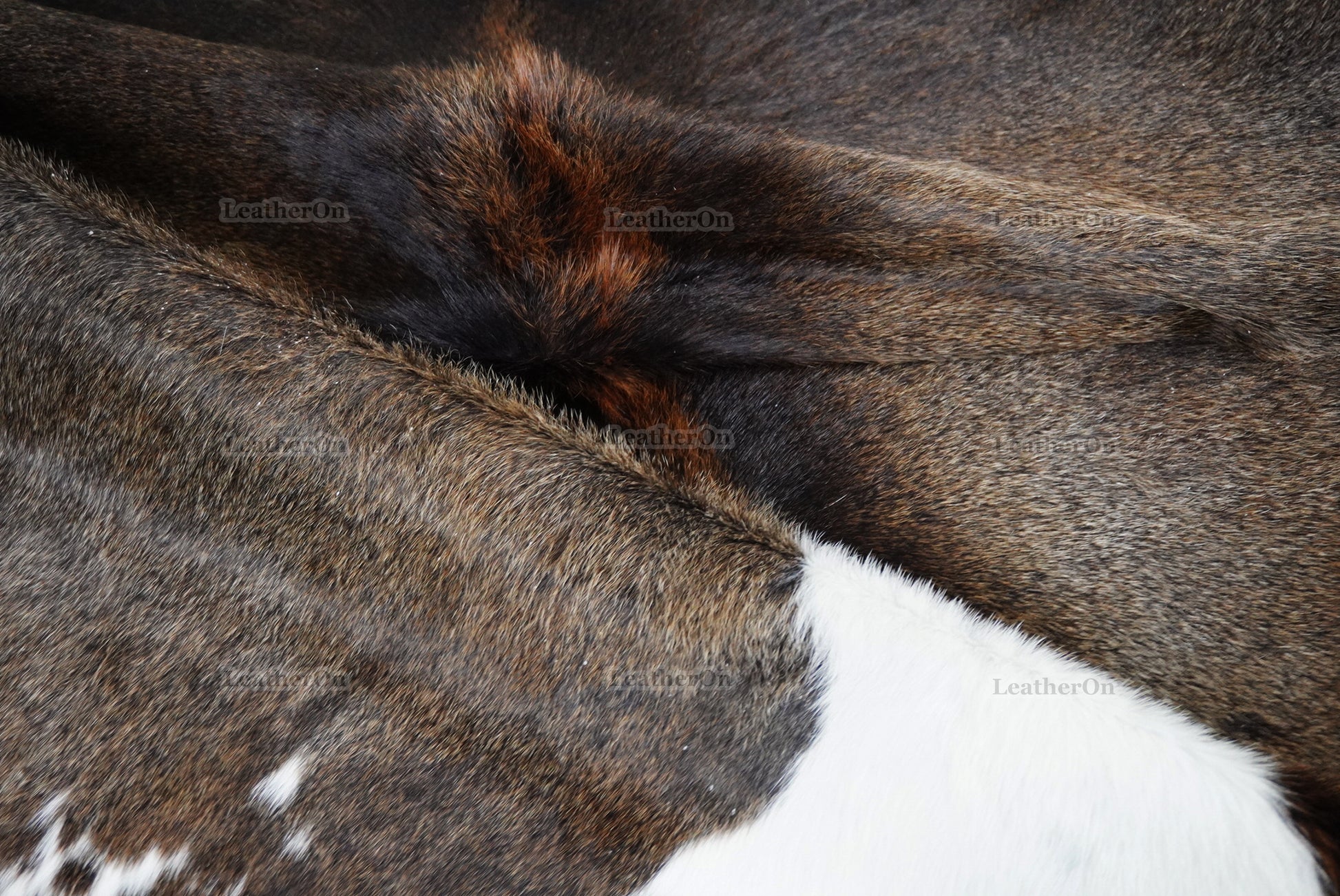 Tricolor Cowhide (4.3 X 3.7 ft.) Exact As Photo Cowhide Rug | 100% Natural Cowhide Area Rug | Real Hair-on Leather Cowhide Rug | C881