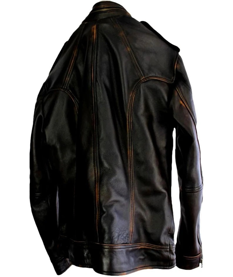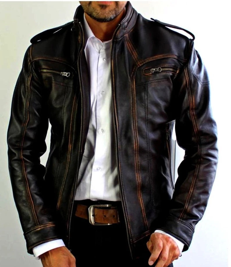Distressed Leather Jacket Men - Genuine Leather Jacket Moto Biker Style for all occasions