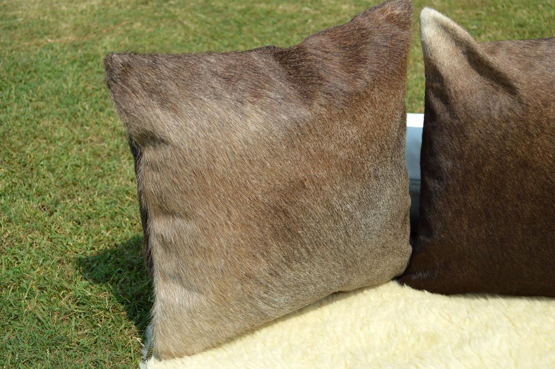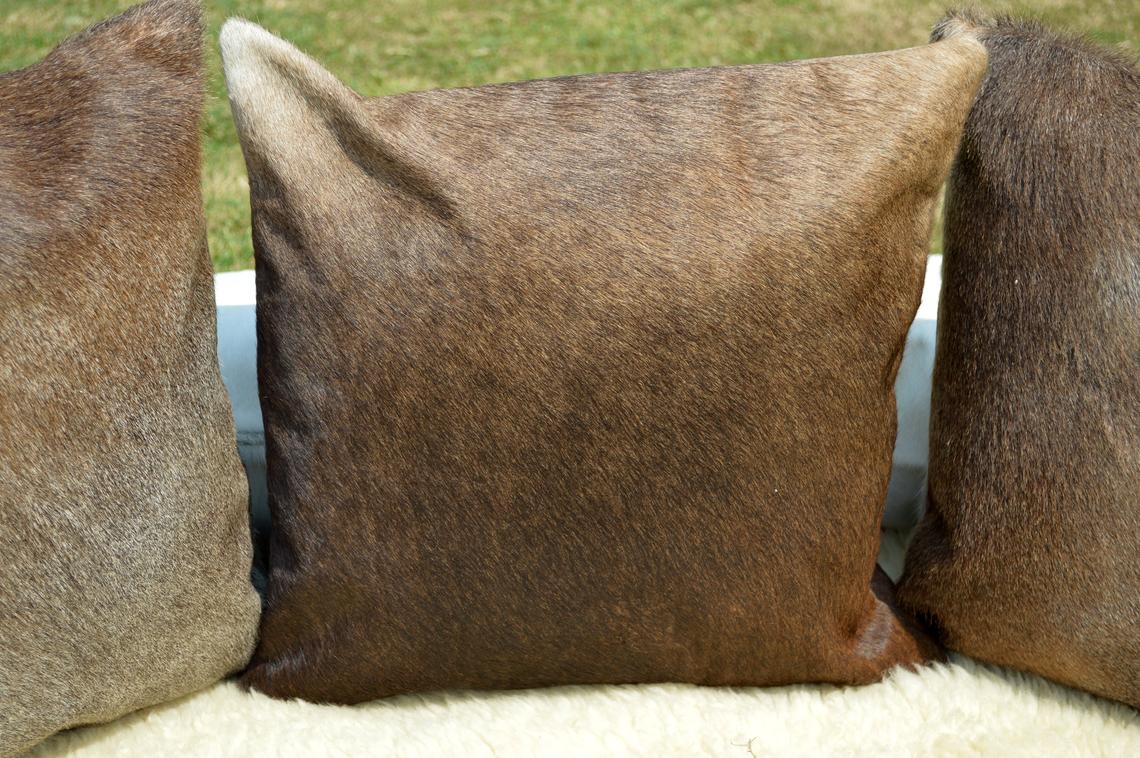 Handmade 100% Natural Hair on Real Cowhide Leather on both sides of pillow with Hidden Zipper