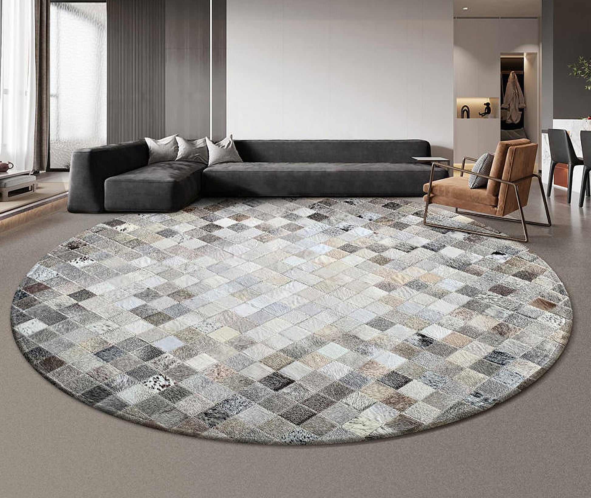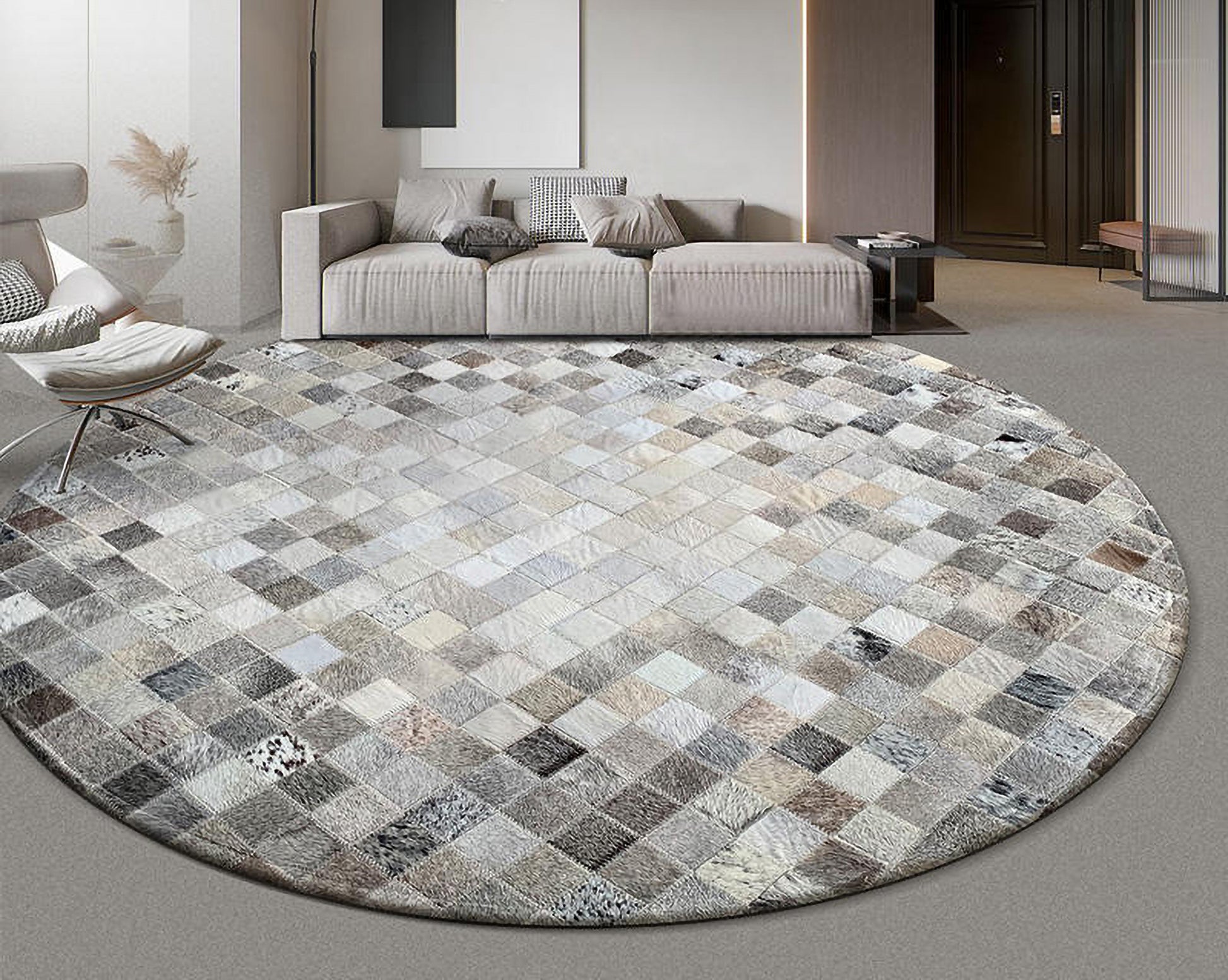 Handcrafted Hair-On Cowhide Patchwork Round Rug – Natural Beauty