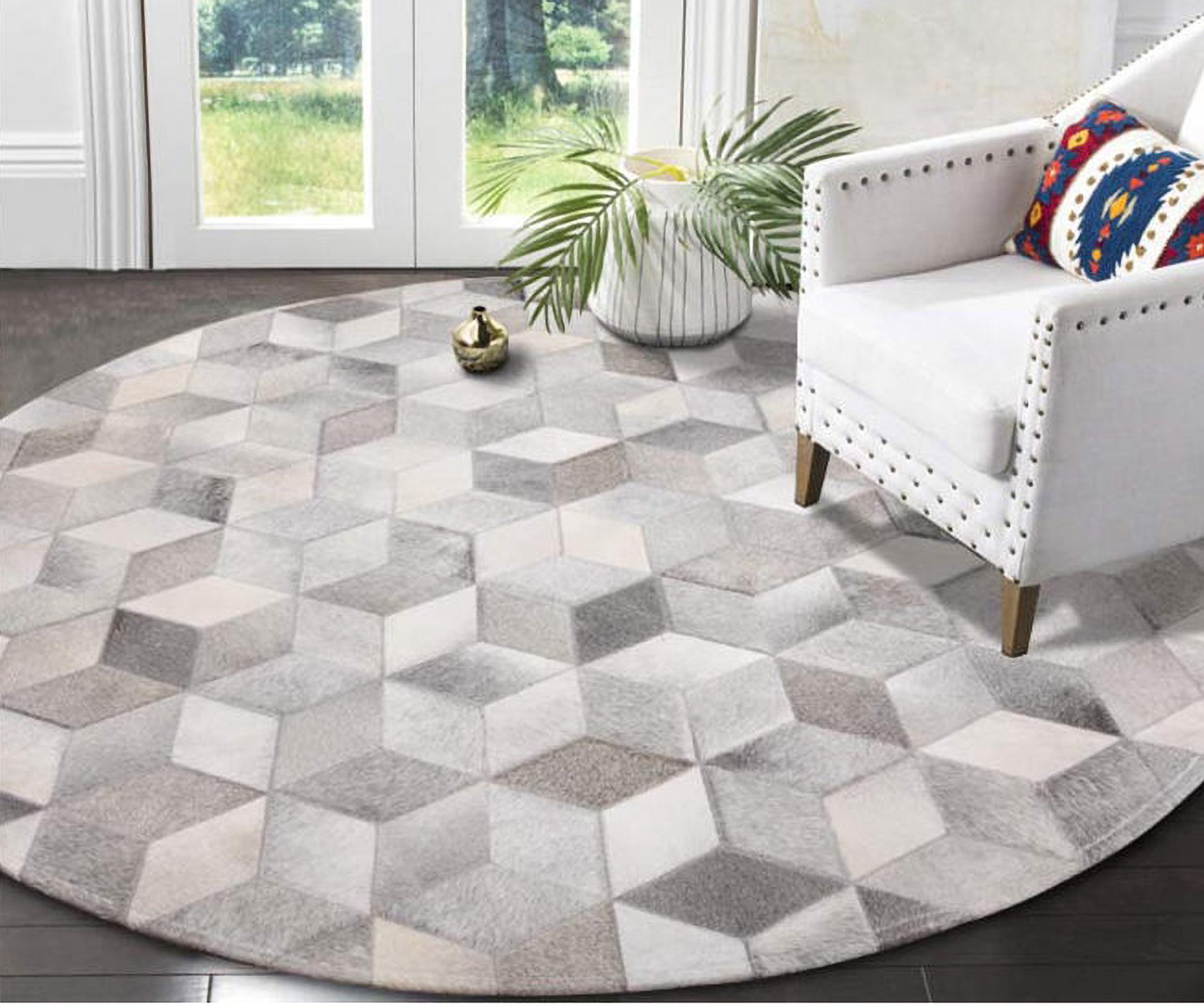 Handcrafted Natural Cowhide Round Rug – Unique Patchwork Art