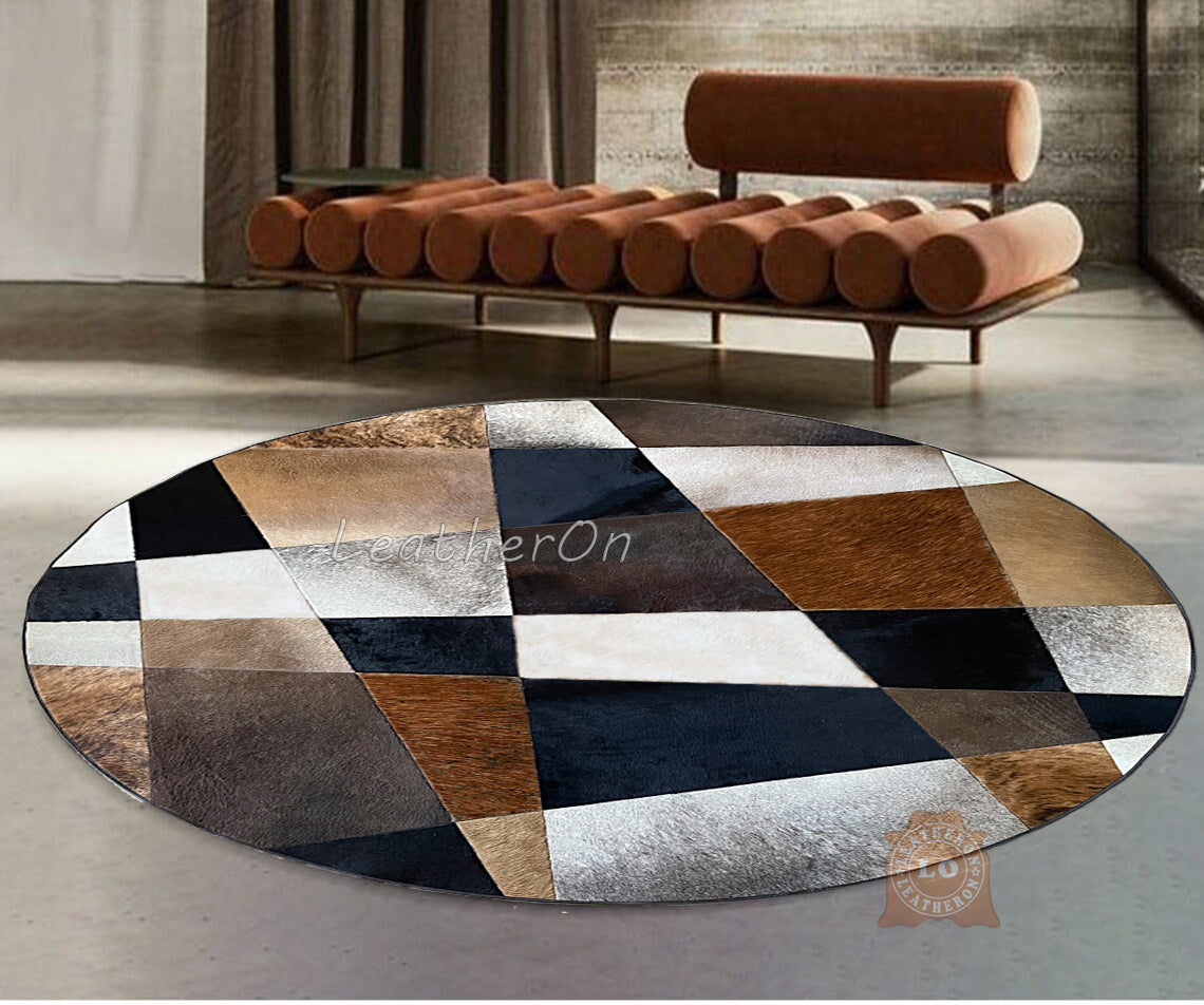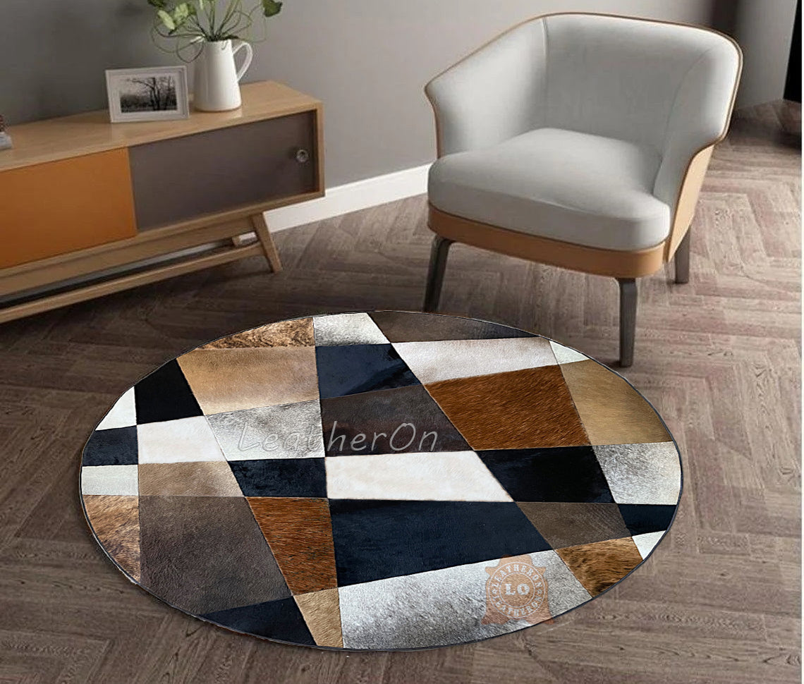 Expertly handcrafted from the premium Cowhides, these Cowhide Rugs are skillfully sewn together. These patchwork rugs present an eye-catching geometric version of the traditional cowhide. Each cowhide area rug is made up of a combination of spectacular color tones, making it ideal for any room.