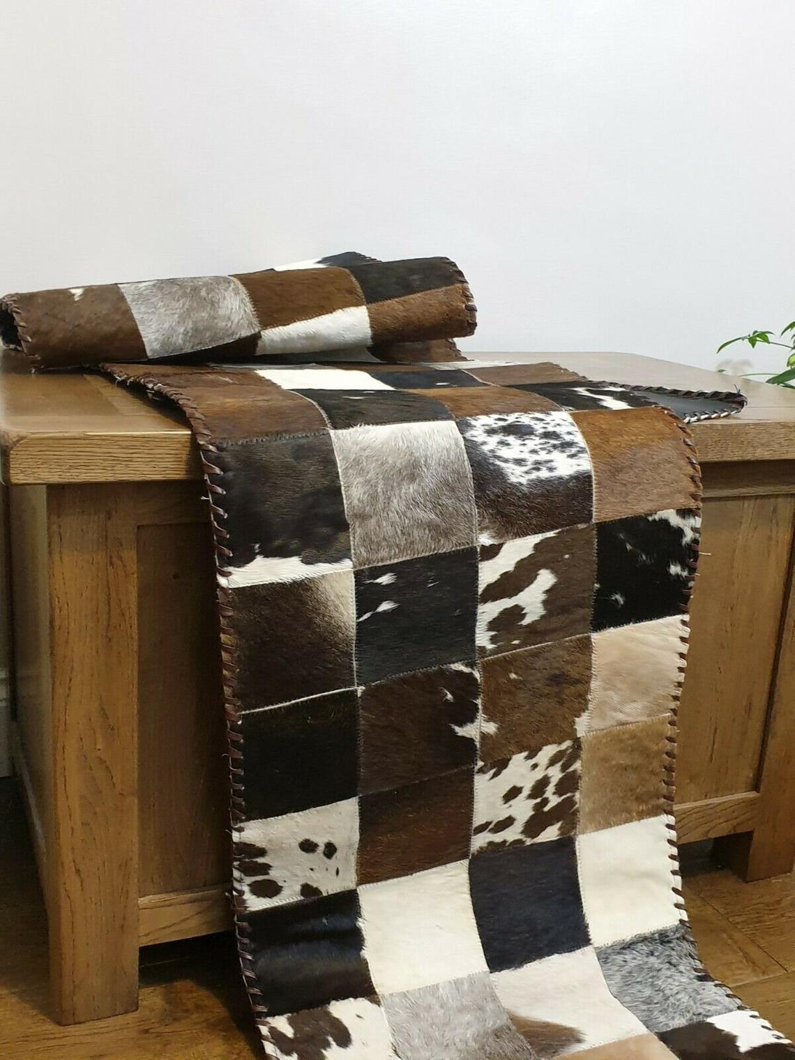 Handmade 100% Natural Cowhide Table Runner | Hair on Leather Multicolor Patchwork Cow hide Table Top