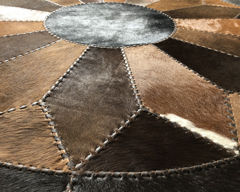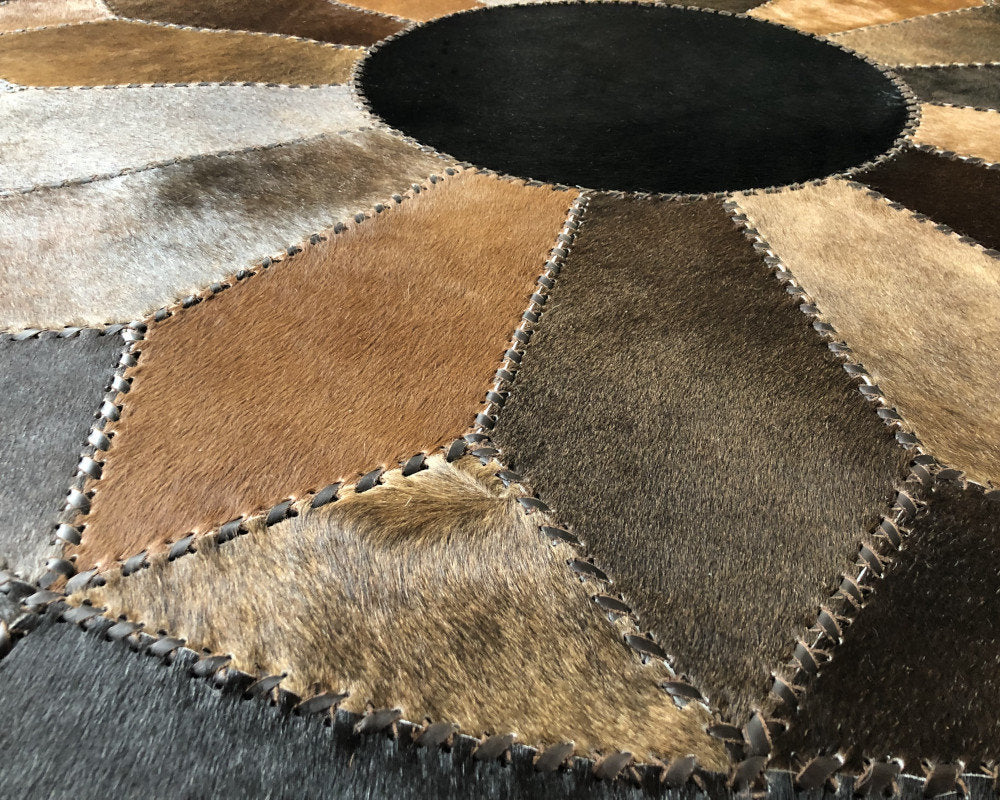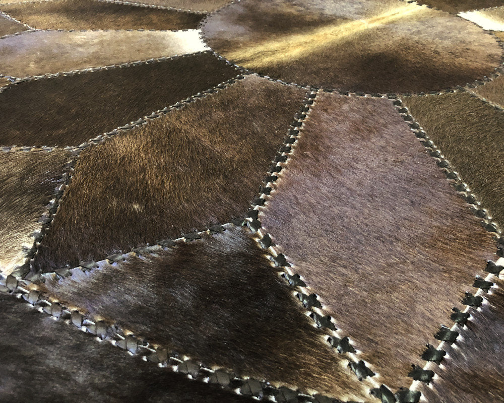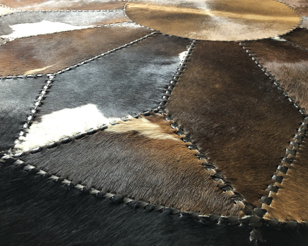 Expertly handcrafted from the premium Cowhides, these Cowhide Rugs are skillfully sewn together. These patchwork rugs present an eye-catching geometric version of the traditional cowhide. Each cowhide area rug is made up of a combination of spectacular color tones, making it ideal for any room.