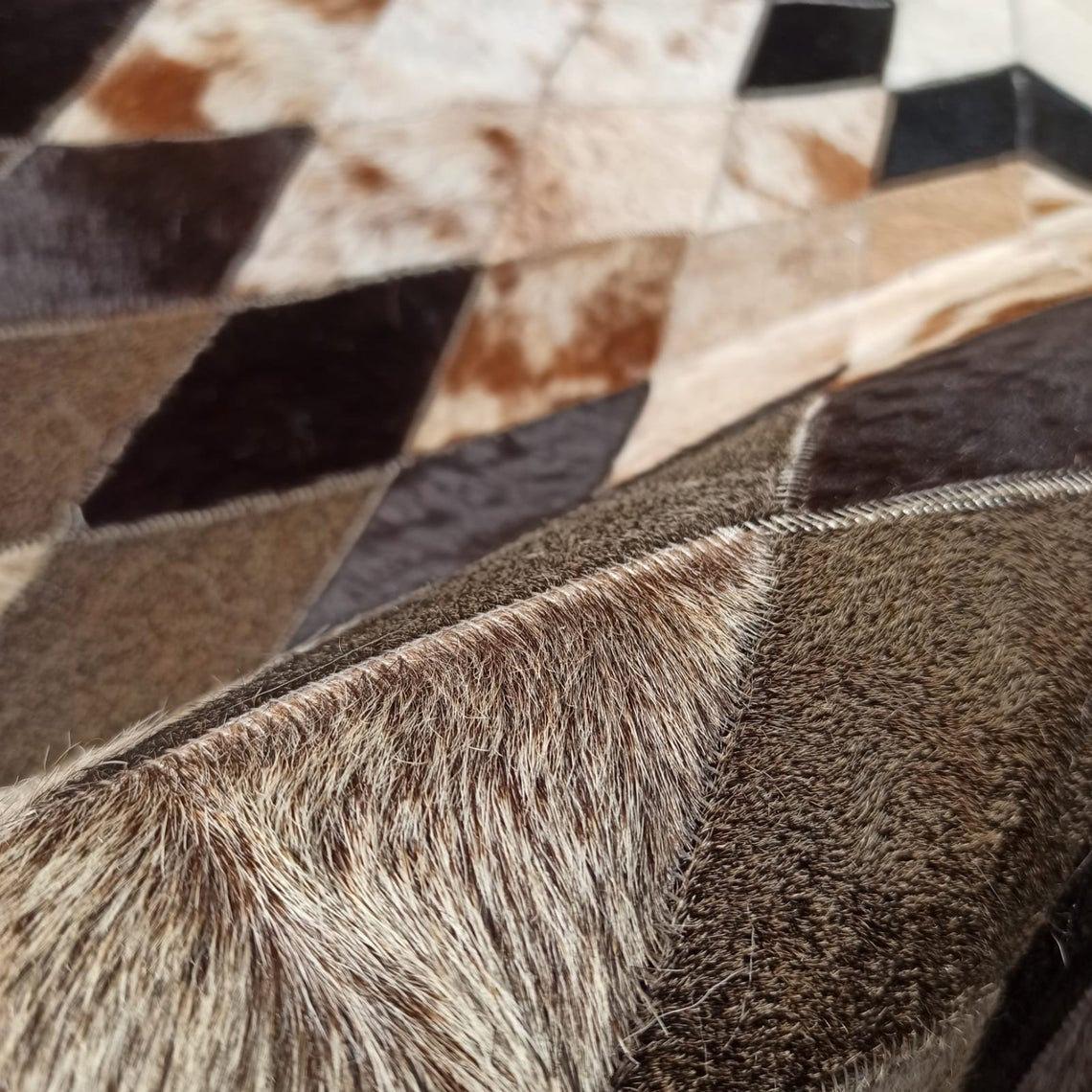 HANDMADE 100% Natural Patchwork Cowhide Area Rug | Hair on Leather Cowhide Carpet | PR81