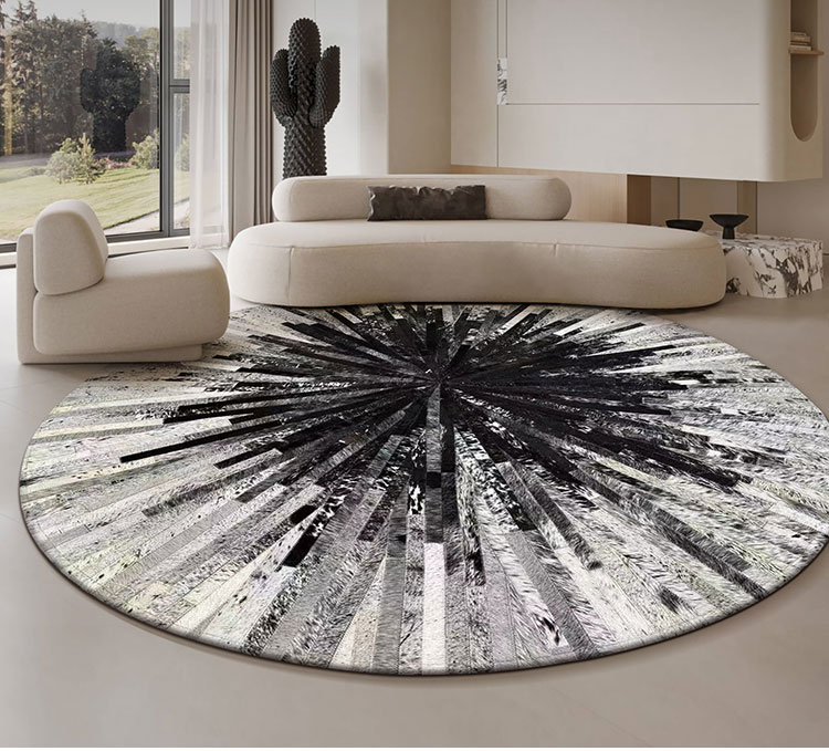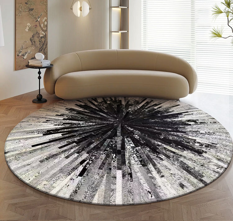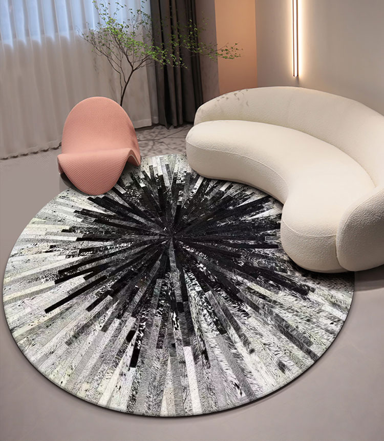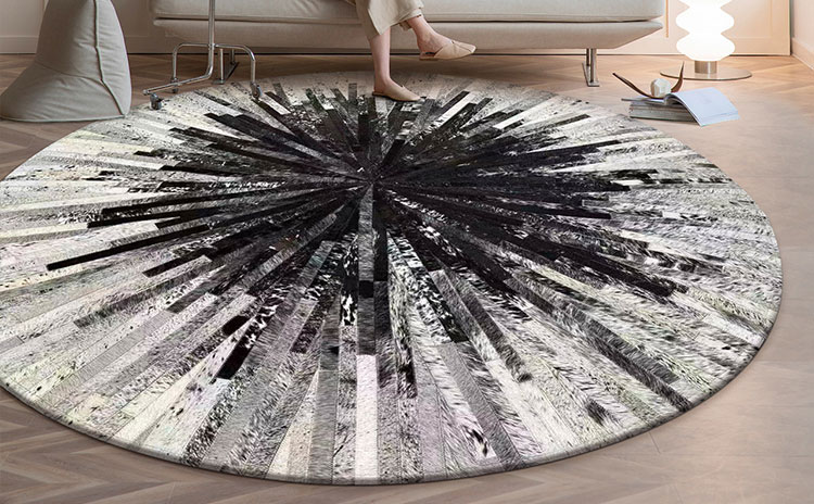 Handmade Natural Hair-On Cowhide Patchwork Round Rug – Rustic Elegance
