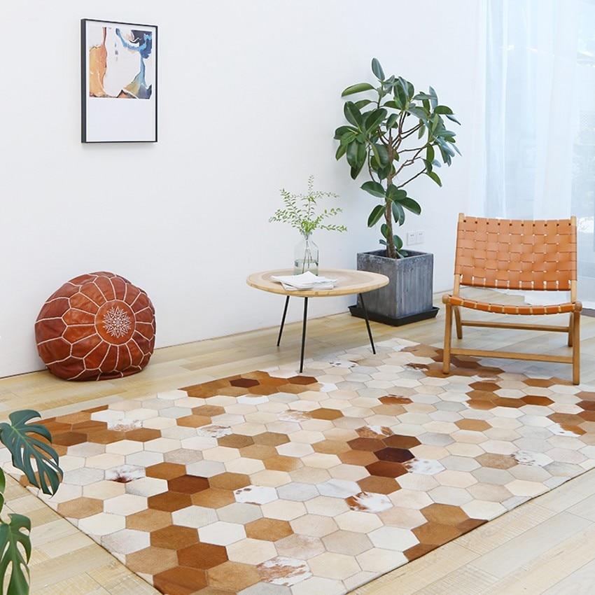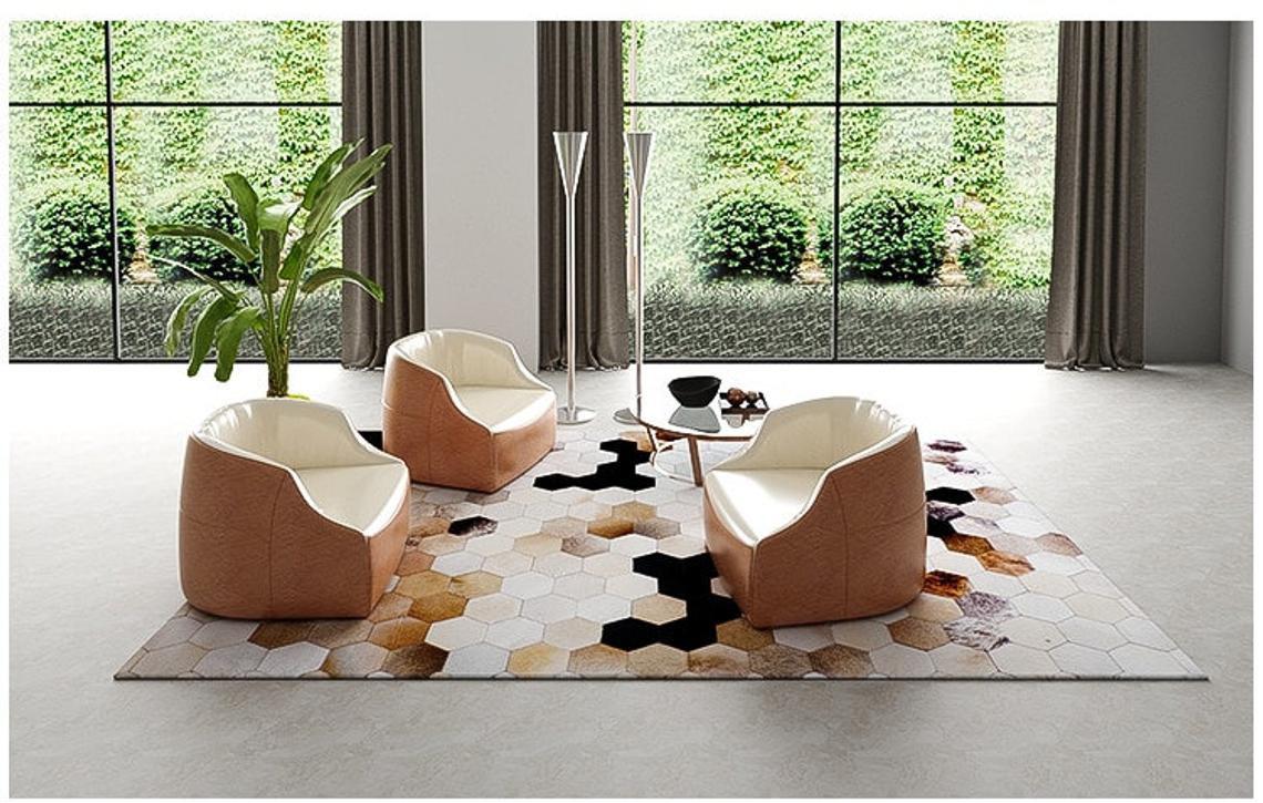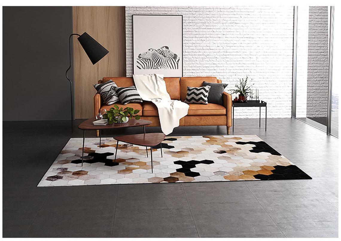 Expertly handcrafted from the premium Cowhides, these Cowhide Rugs are skillfully sewn together. These patchwork rugs present an eye-catching geometric version of the traditional cowhide. Each cowhide area rug is made up of a combination of spectacular color tones, making it ideal for any room.