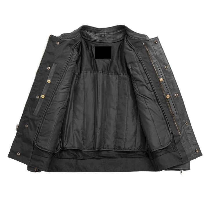 Men's Black Biker Leather Jacket - Genuine Full Grain Leather Cafe Racer Jacket - Motorcycle Jacket