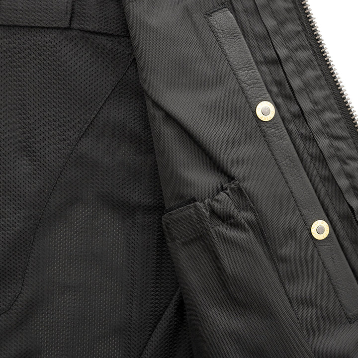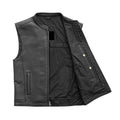 Men's Black Motorcycle Club Style Leather Vest - Western Style Biker Vest - Real Leather Waistcoat