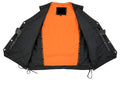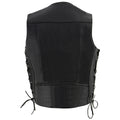 Men's Black Premium Side Lace Motorcycle Rider Leather Vest - Snap Closure V Neck Biker Vest - Real Leather Waistcoat