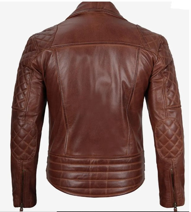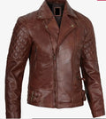 Men's Cafe Racer Leather Jacket - Retro Style Asymmetrical Moto Quilted Shoulder Leather Jacket