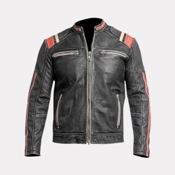 Men's Distressed Leather Jacket - Genuine Full Grain Leather Cafe Racer Jacket - Motorcycle Jacket