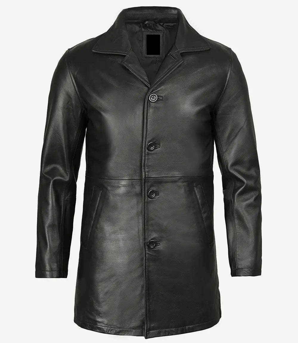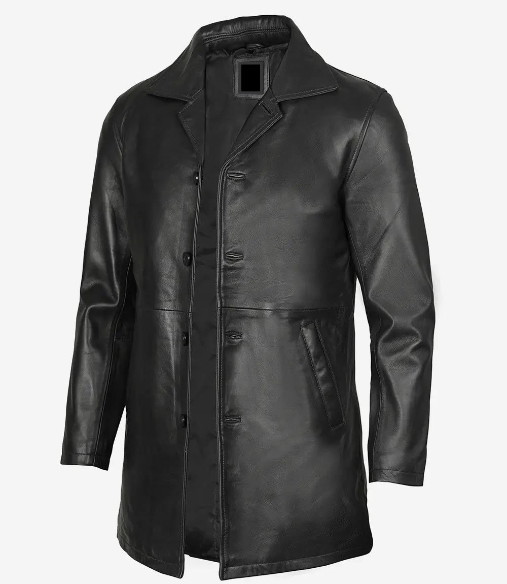 Elevate your style with this timeless men's leather coat, expertly crafted from high-quality genuine leather. Designed to make a statement, this coat combines classic sophistication with modern edge.