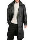 Men's Leather Winter Trench Coat - Classic Style, Genuine Leather, Belted Double Breasted Coat