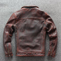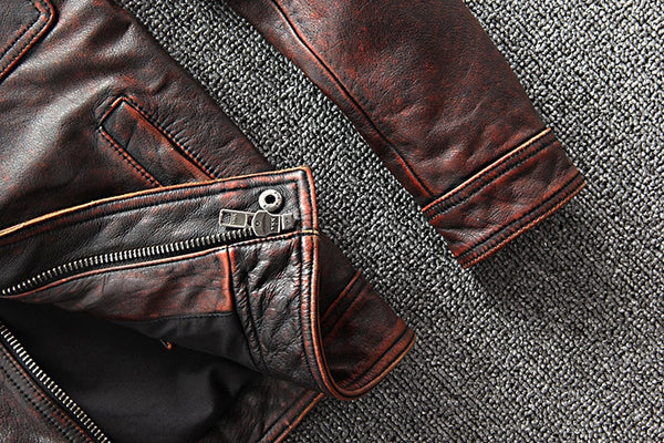 Men's Luxury Leather Jacket - Genuine Full Grain Cowhide, Biker Style, Soft and Rugged, Zip Closure