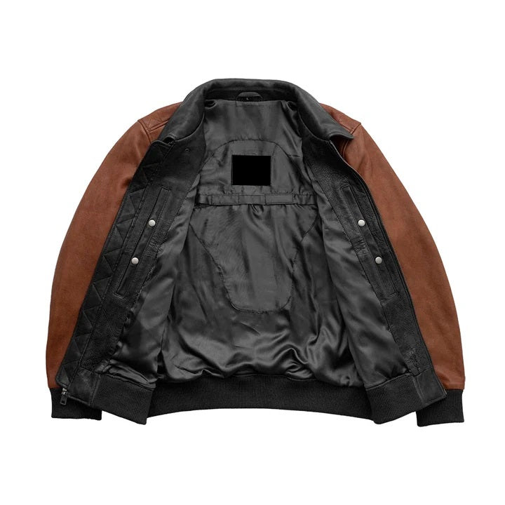 Men's Motorcycle Bomber Two Tone Leather Jacket - Genuine Lambskin Leather Cafe Racer Jacket - Biker Jacket