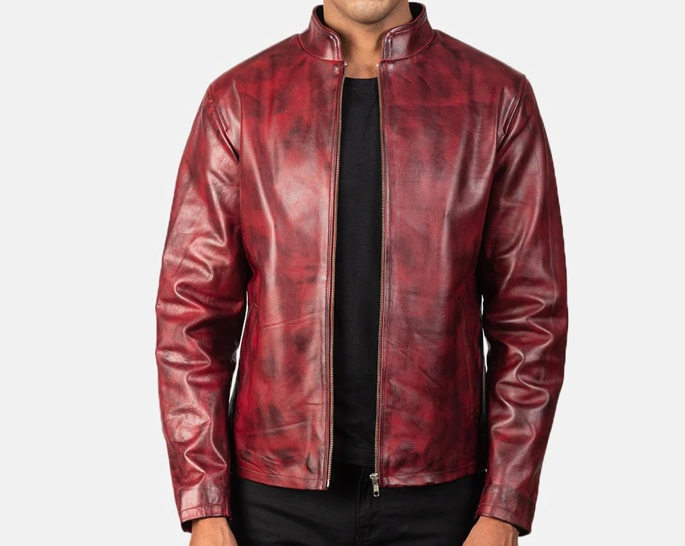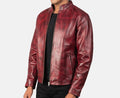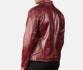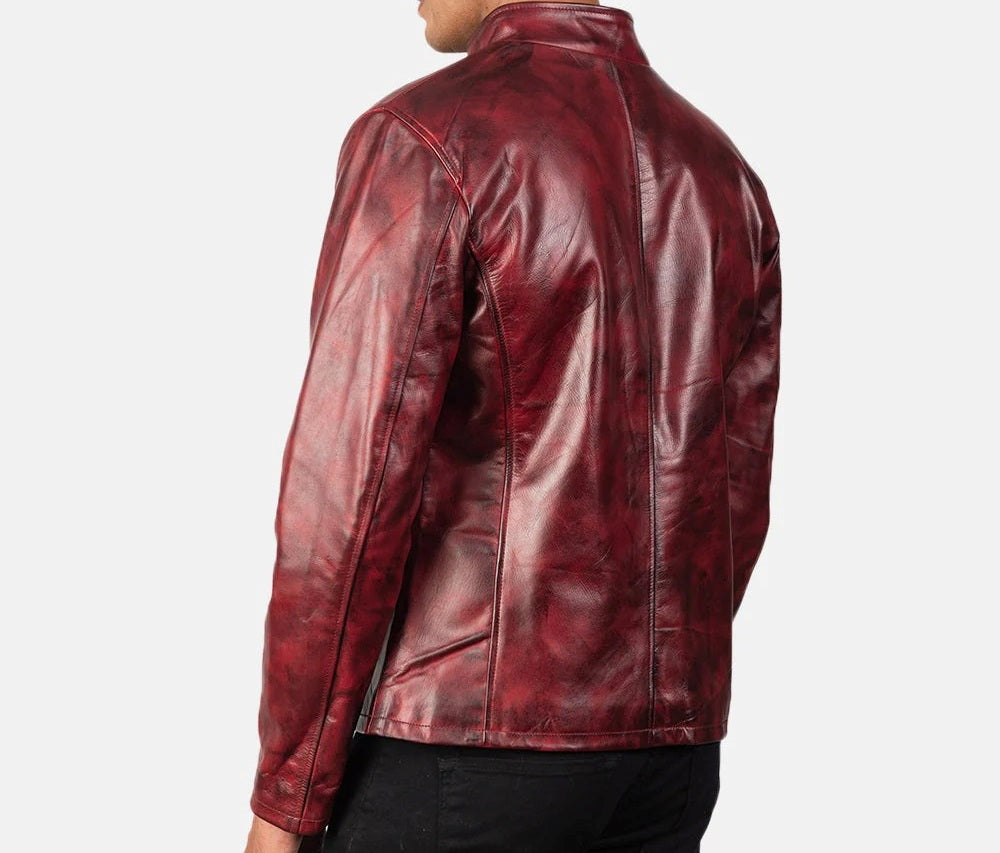 Men's Motorcycle Distressed Burgundy Leather Jacket - Genuine Lambskin Leather Cafe Racer Jacket - Casual Biker Jacket