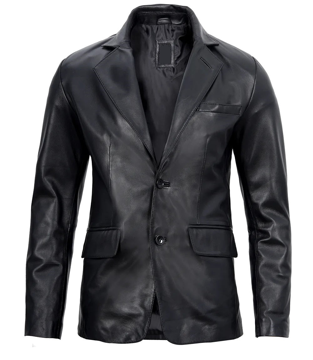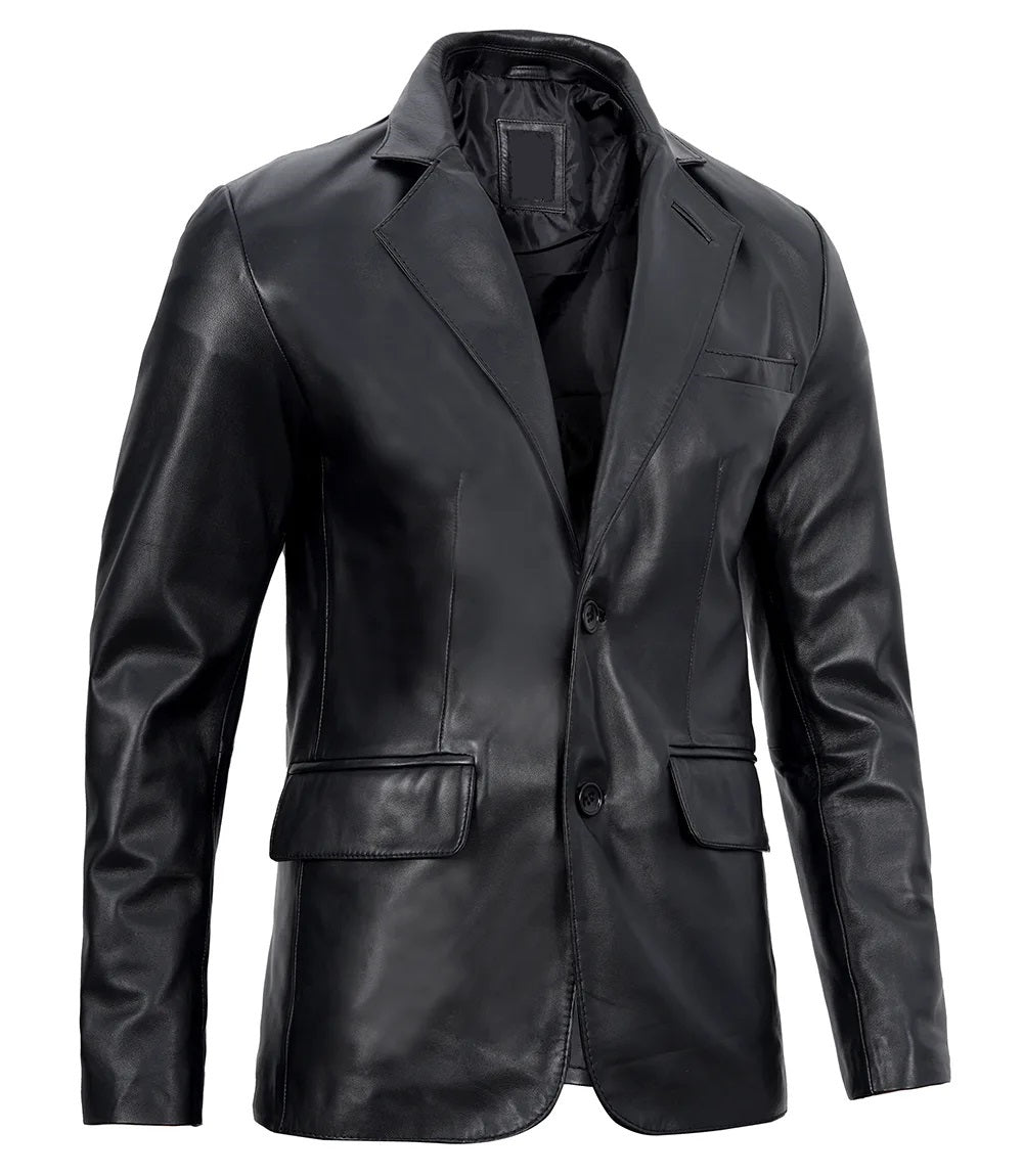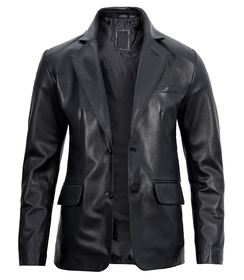 Men's Real Leather Blazer Jacket - Motorcycle Biker Genuine Leather Blazer Jacket
