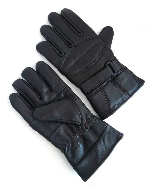 Men's Real Leather Winter Gloves - Sheep Leather Black Biker Gloves - Moto Stylish Gloves