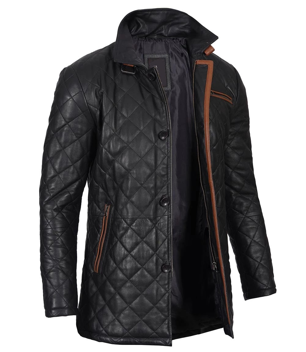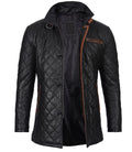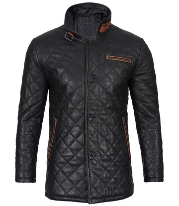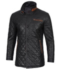Men's Winter Quilted Leather Coat - Classic Style, Genuine Leather Car Coat