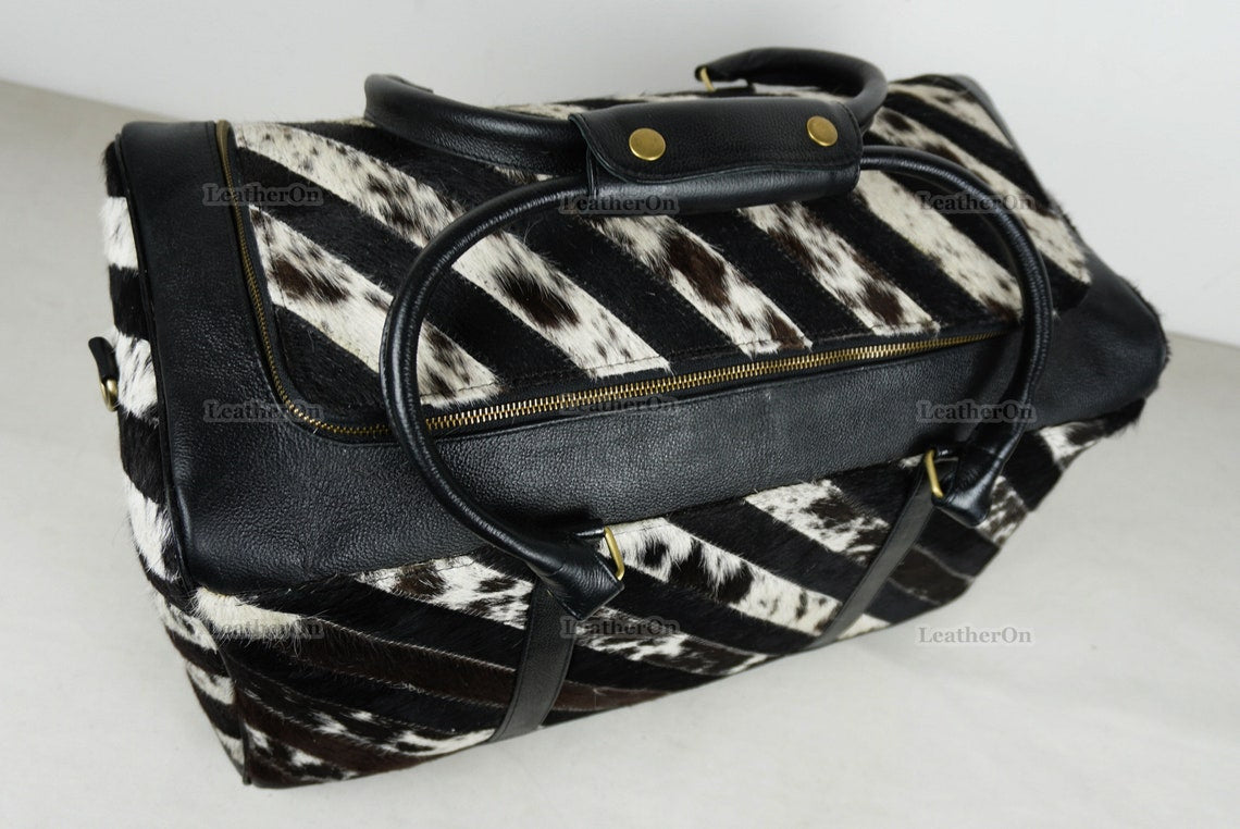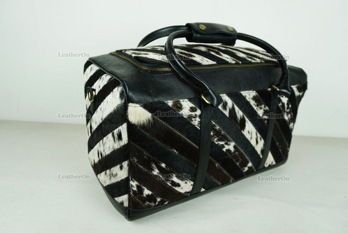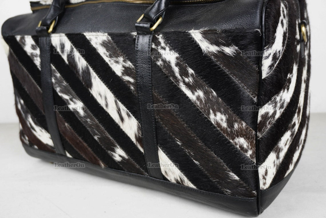 Large Duffel Bag!! Cowhide Patchwork Duffel Bag | Hair-On-Leather Travel Bag | Cow Skin Luggage Bag | Handmade Cowhide Duffel Bag | DB101