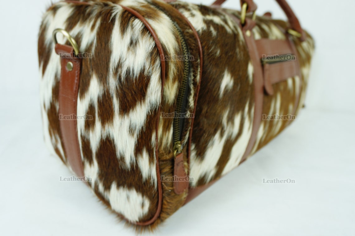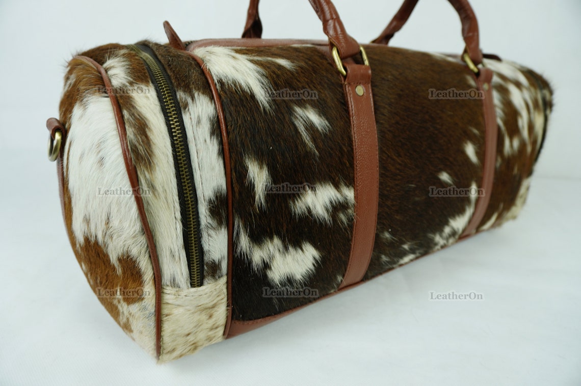 Cowhide Duffel Bag | Natural Cow Skin Duffel Bag | Hair-On-Leather Travel Bag | Cowhide Luggage Bag | Handmade Duffel Bag | DB113