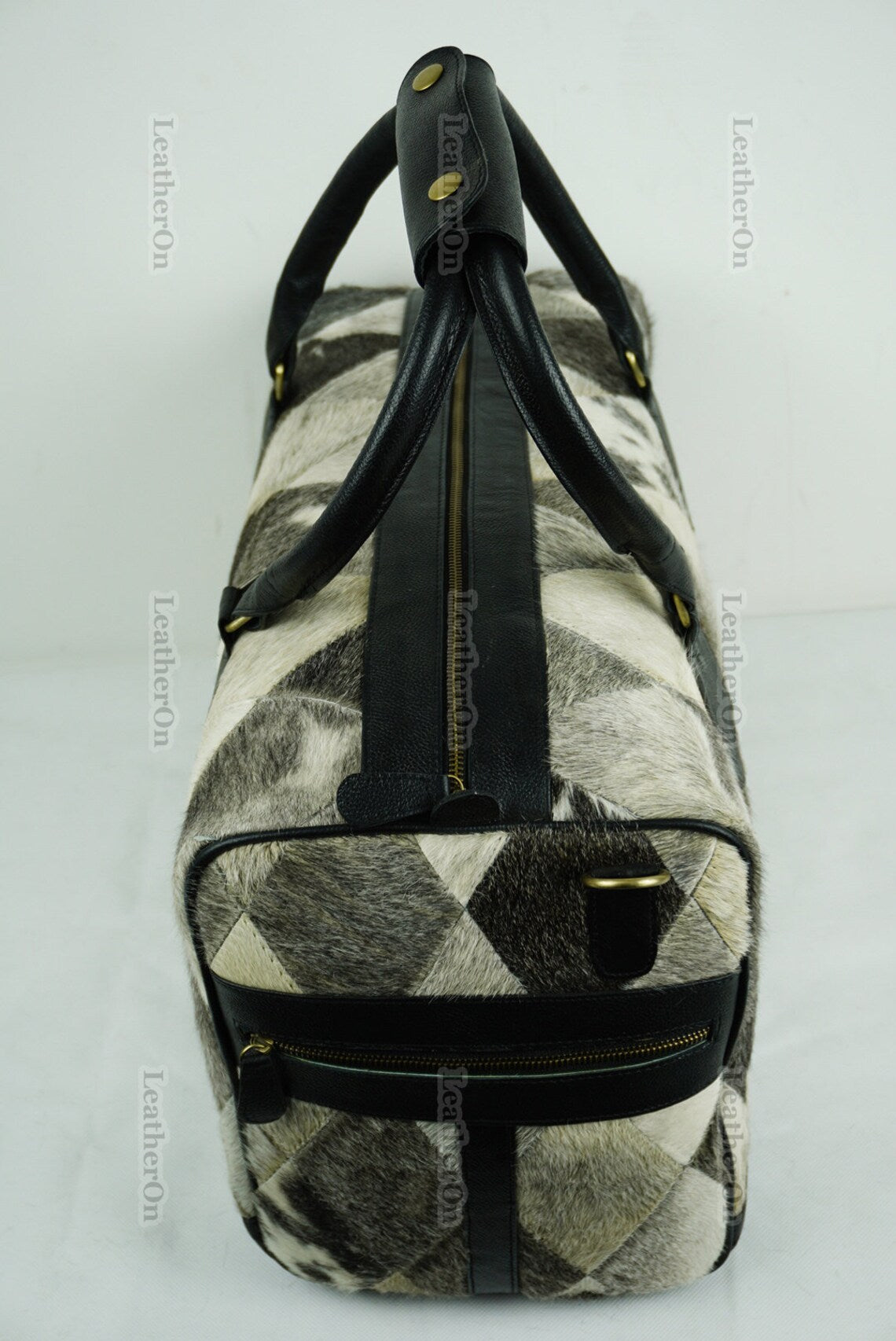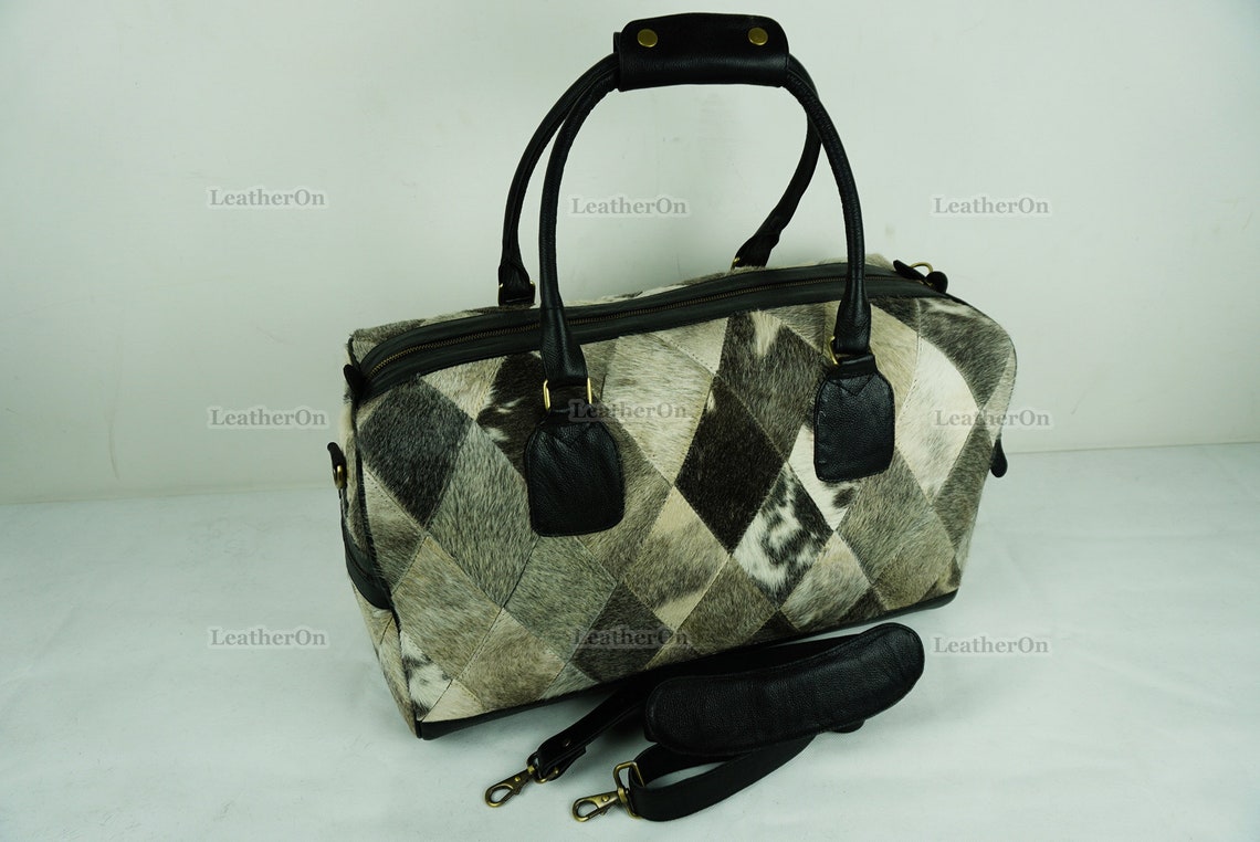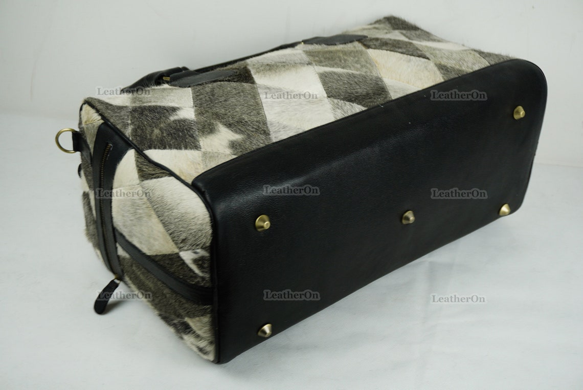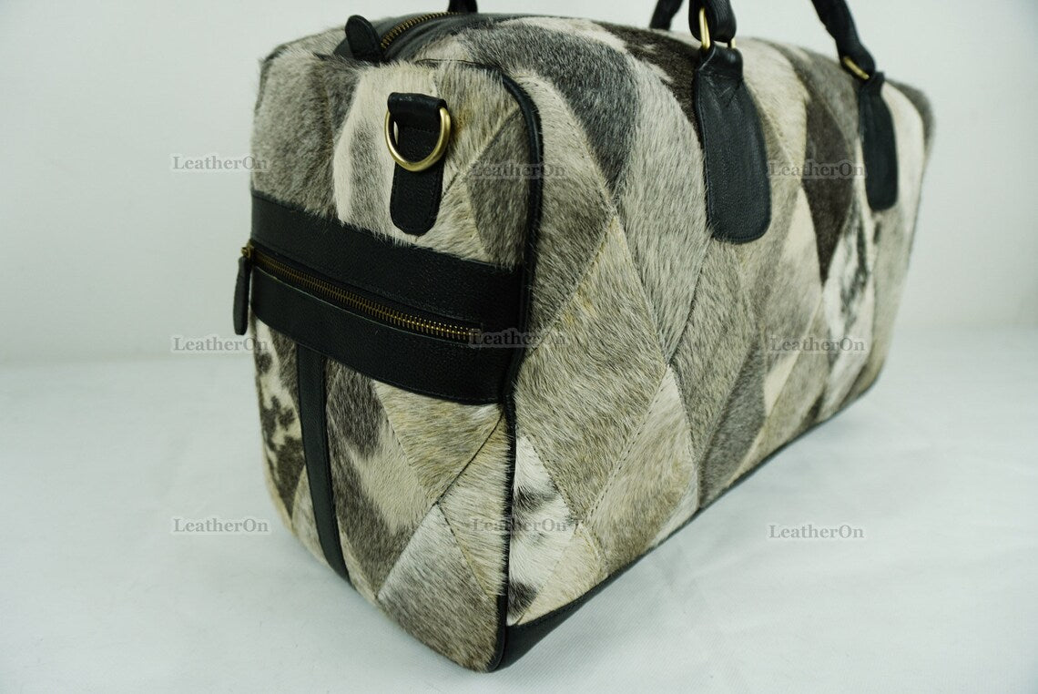 Cowhide Patchwork Duffel Bag | Natural Cowhide Duffel Bag | Hair-On-Leather Travel Bag | Cowhide Luggage Bag | Handmade Duffel Bag | DB91