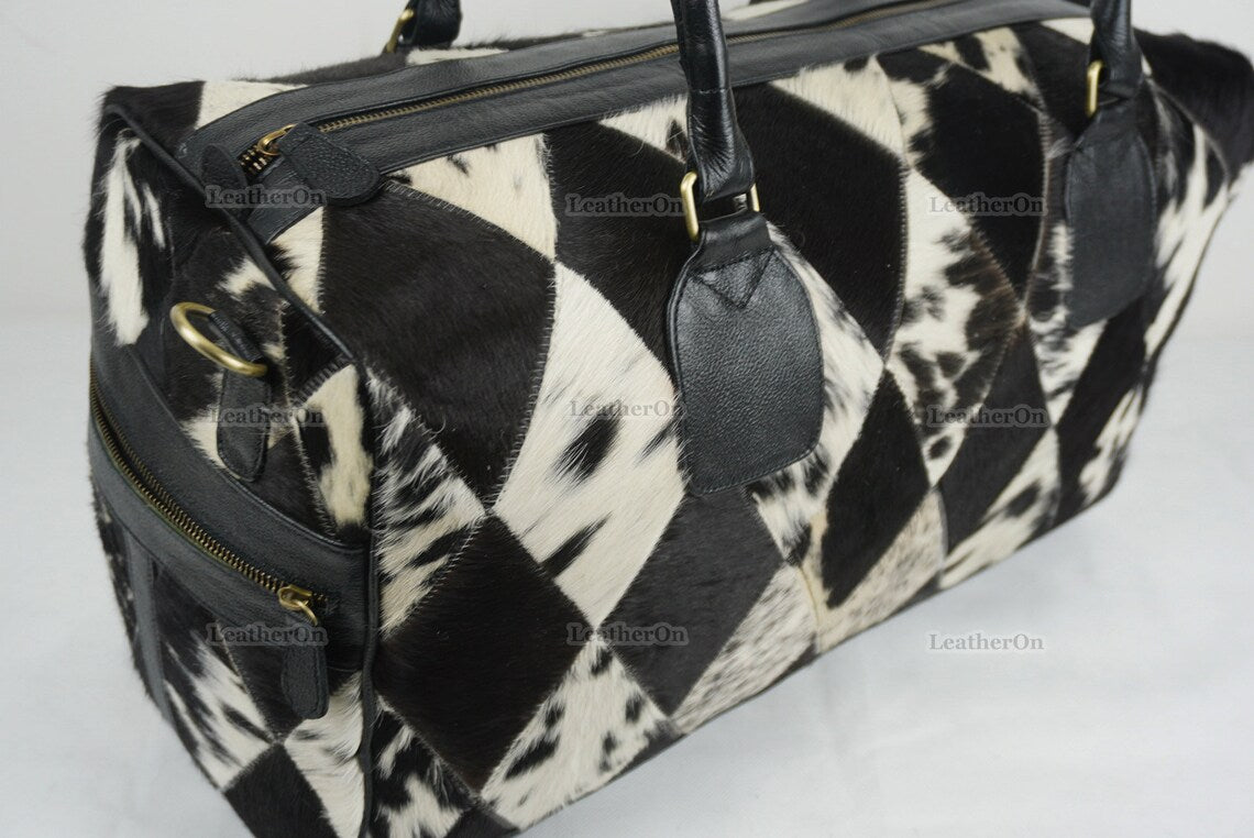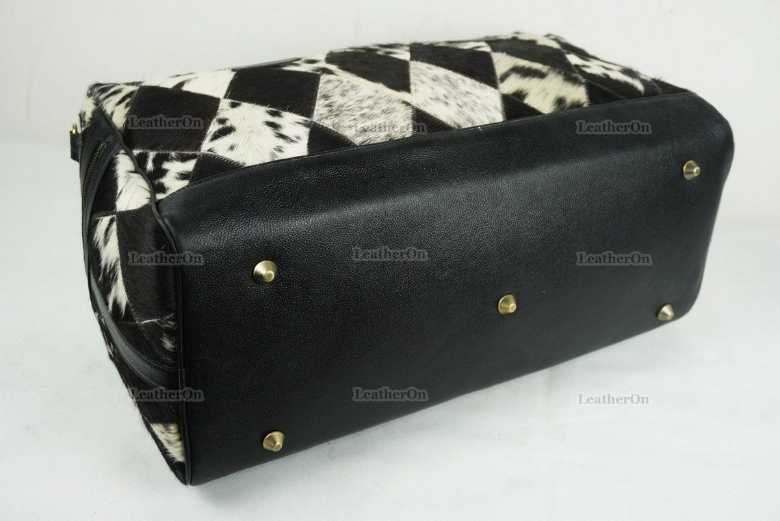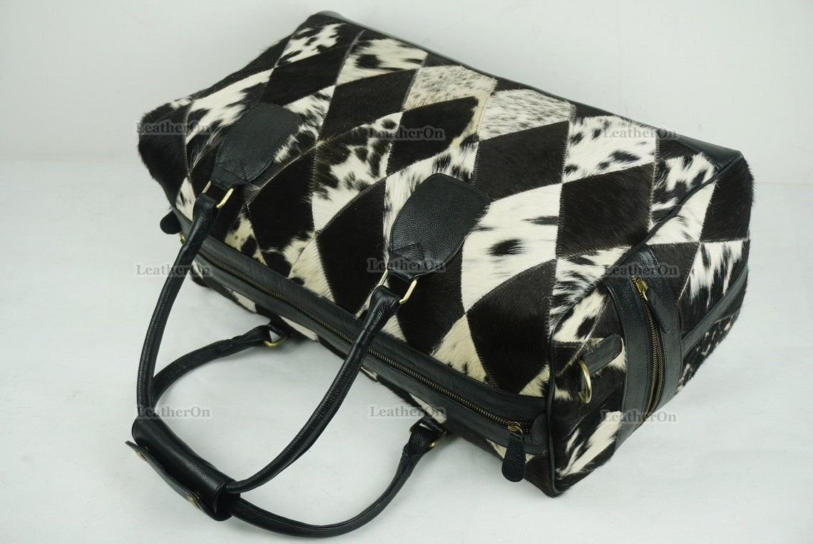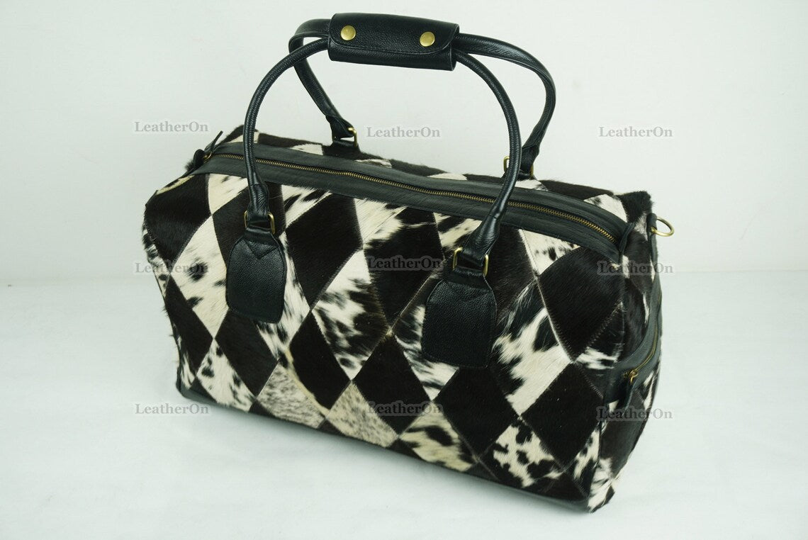Cowhide Patchwork Duffel Bag | Natural Cowhide Duffel Bag | Hair-On-Leather Travel Bag | Cowhide Luggage Bag | Handmade Duffel Bag | DB92