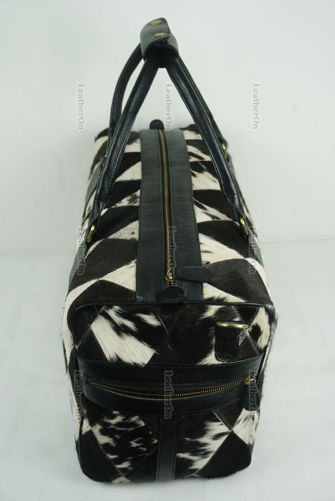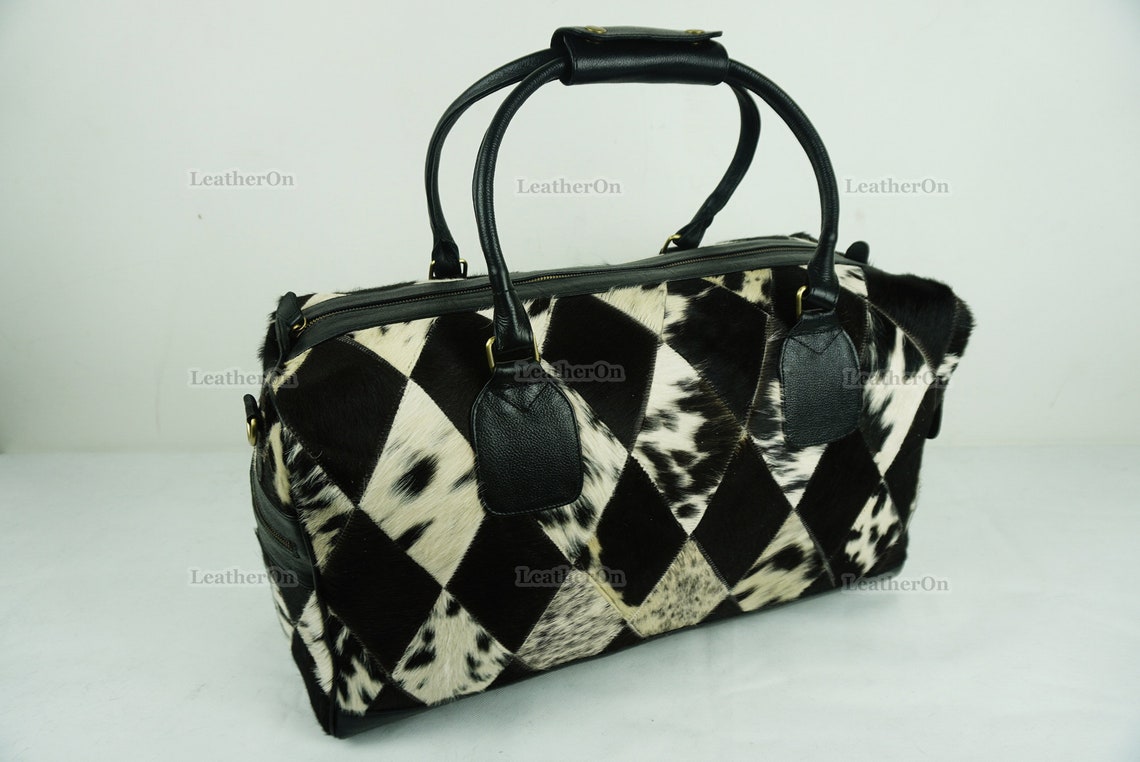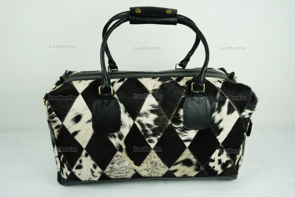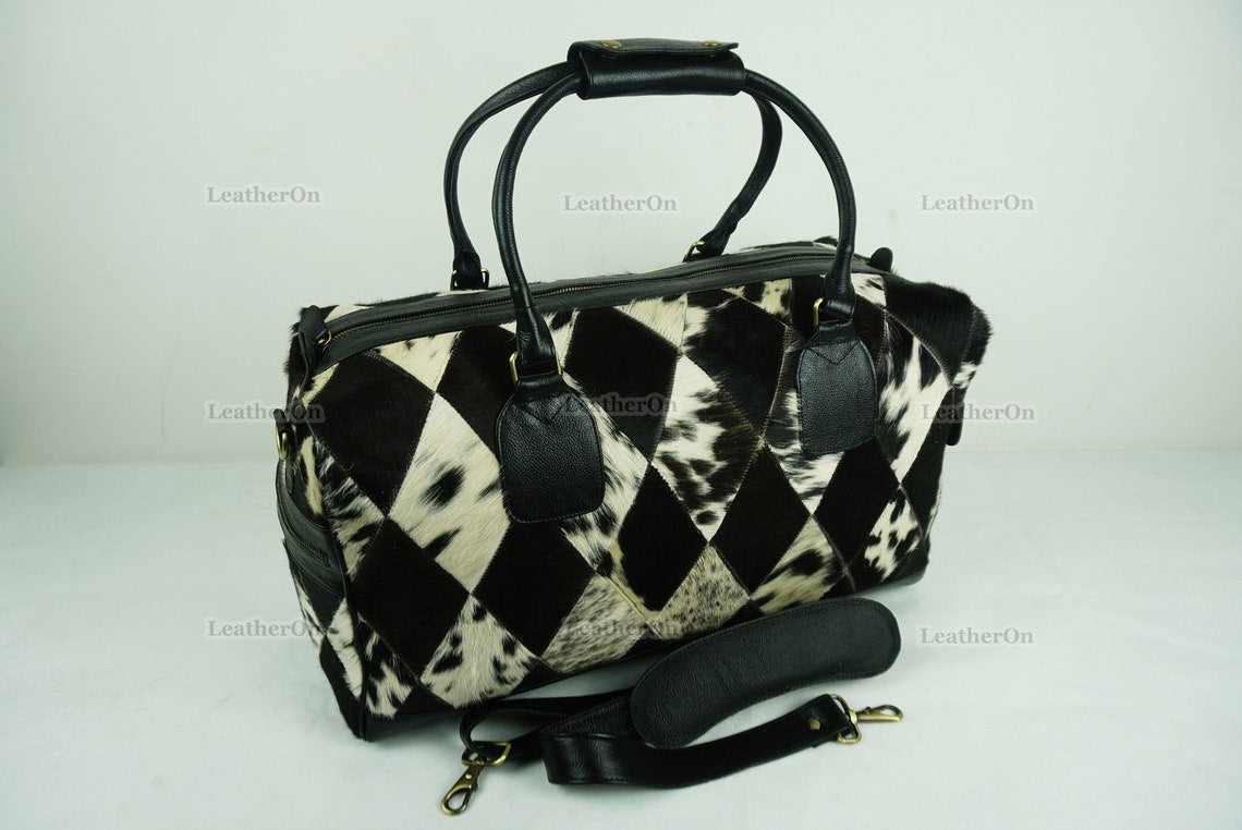 Cowhide Patchwork Duffel Bag | Natural Cowhide Duffel Bag | Hair-On-Leather Travel Bag | Cowhide Luggage Bag | Handmade Duffel Bag | DB92