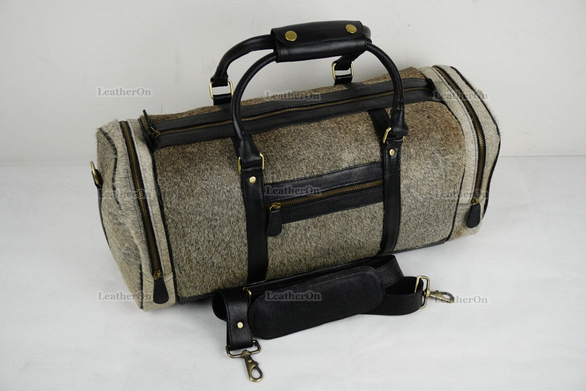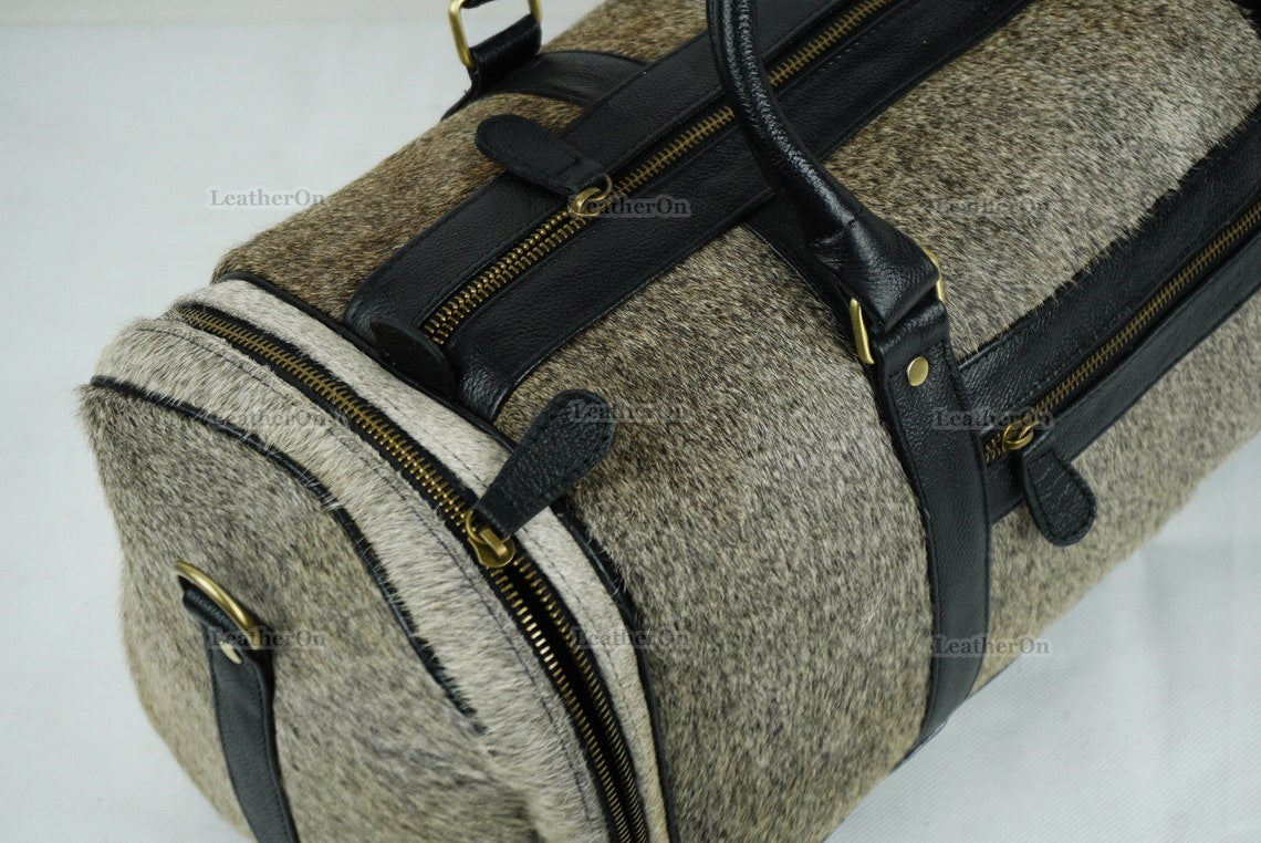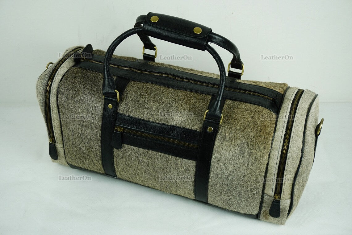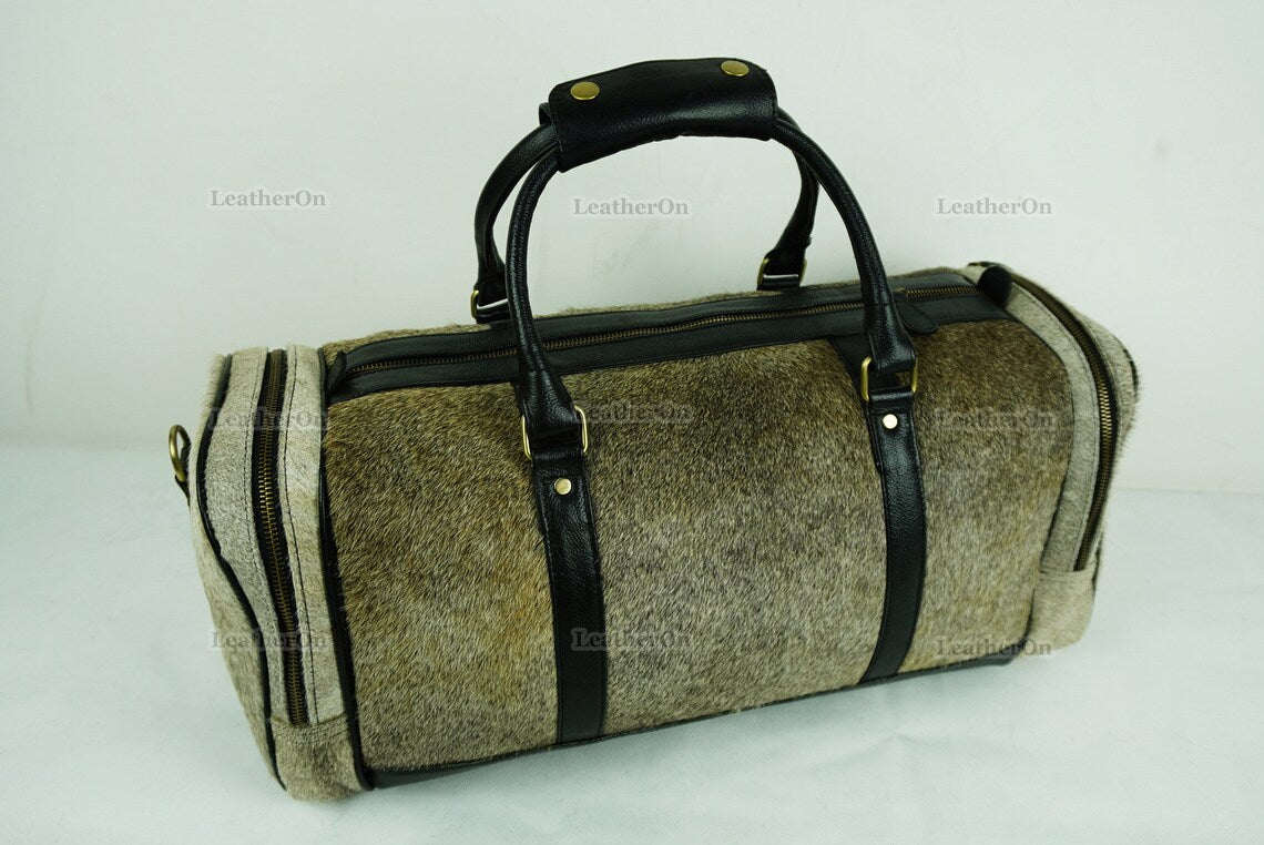 Cowhide Duffel Bag | Natural Cow Skin Duffel Bag | Hair-On-Leather Travel Bag | Cowhide Luggage Bag | Handmade Duffel Bag | DB111