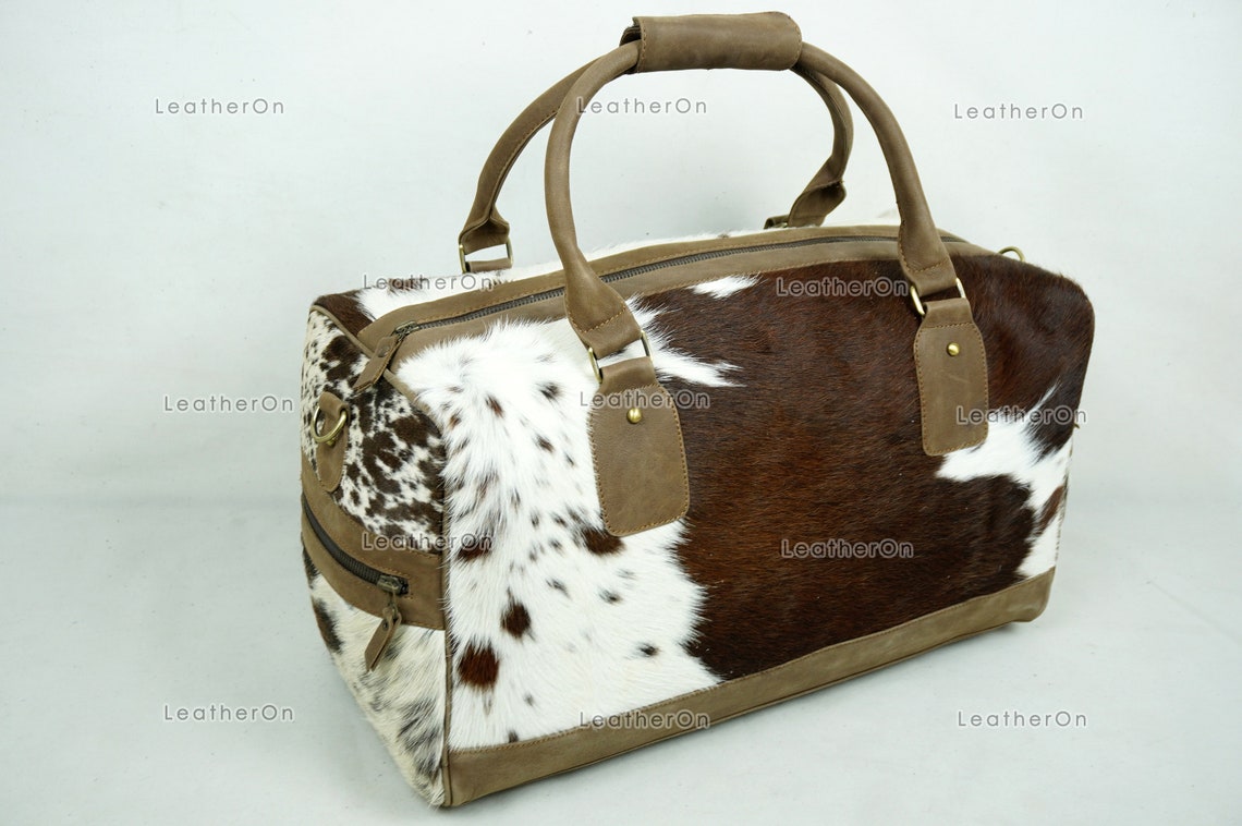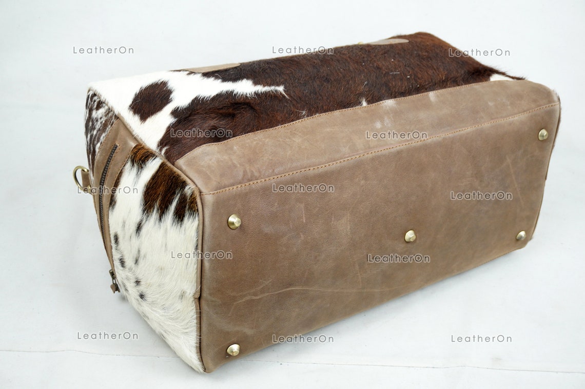 Natural Cowhide Duffel Bag Real Hair On Leather TRAVEL Bag Original Cow Skin Luggage Bag | DB65