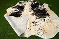 Small ( 4.5 x 4.5 ft.) EXACT As Photo, Black White Speckled COWHIDE RUG | 100% Natural Cowhide Rug | Hair-on Leather Cow Hide Rug | C529