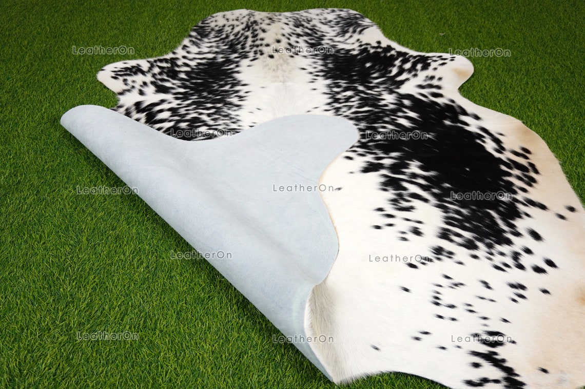 Black White Small (4.5 X 4.8 ft.) Exact As Photo Cowhide Rug | 100% Natural Cowhide Area Rug | Real Hair-on Leather Cowhide Rug | C841