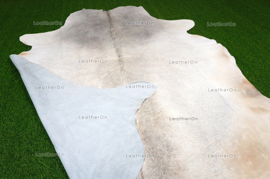 Gray White XLARGE (6 X 6.6 ft.) Exact As Photo COWHIDE RUG | 100% Natural Cowhide Area Rug | Real Hair-on Leather Cowhide Rug | C682