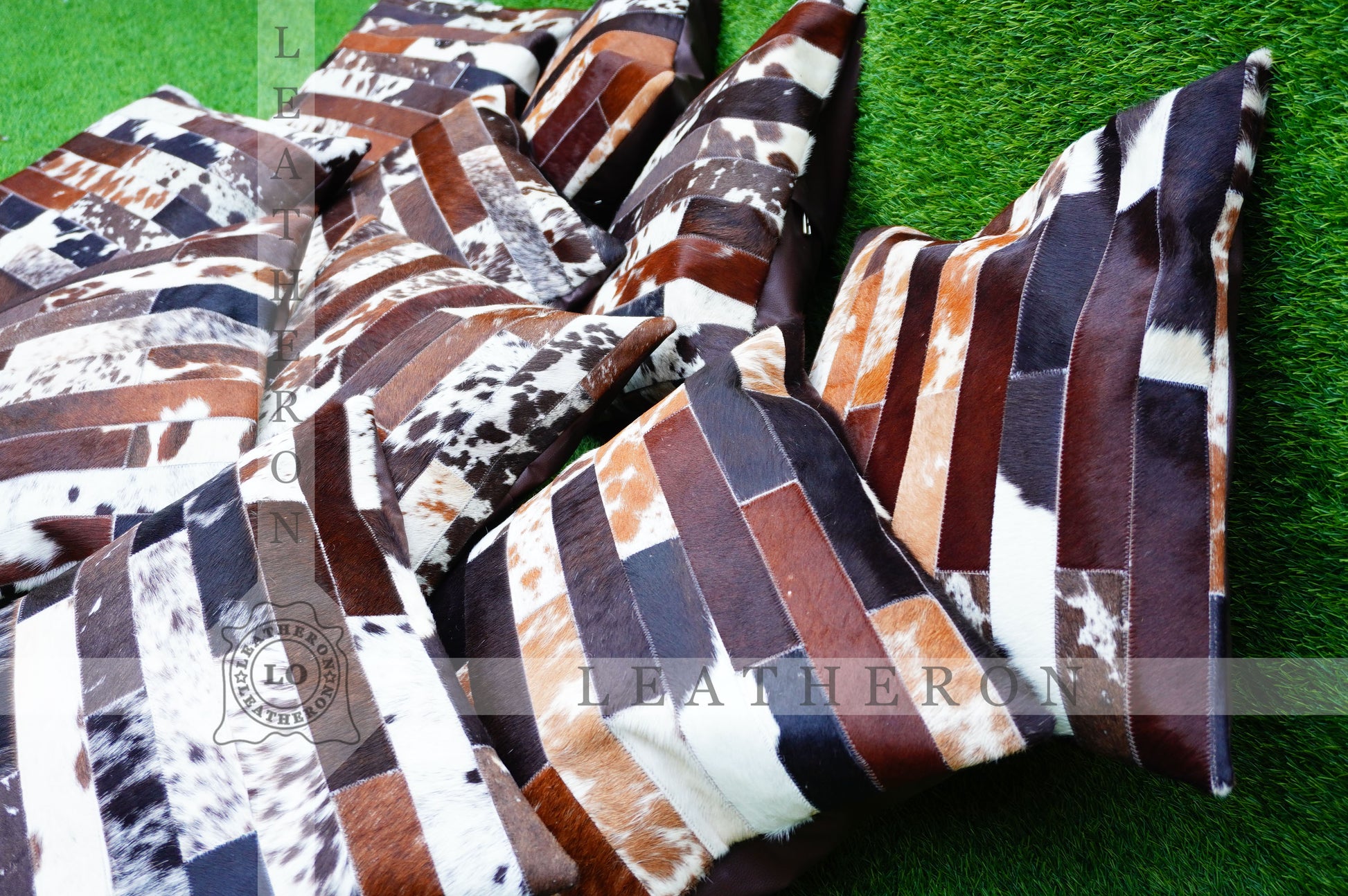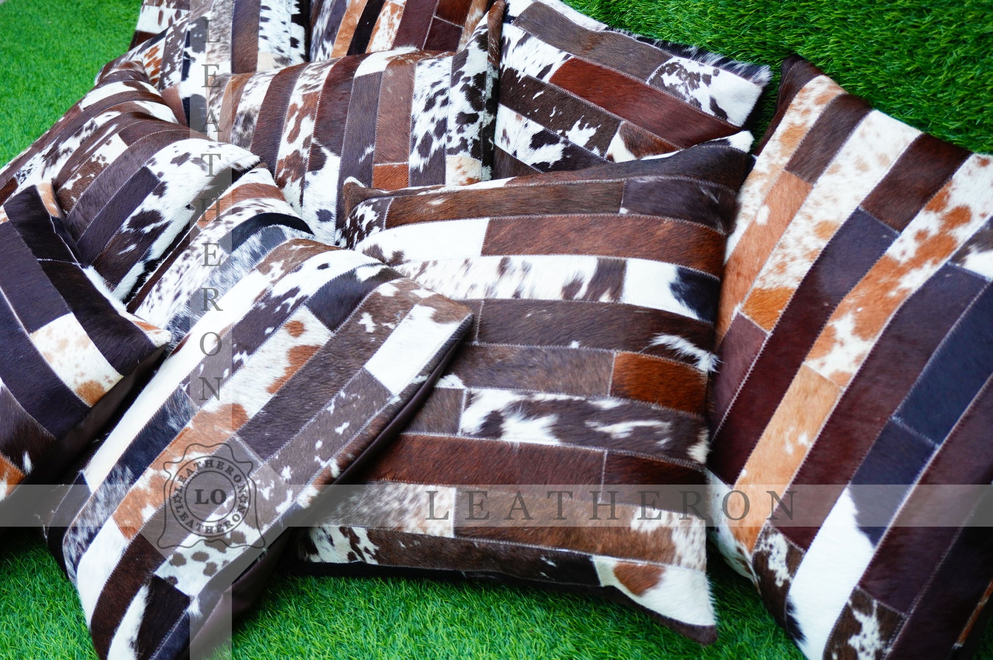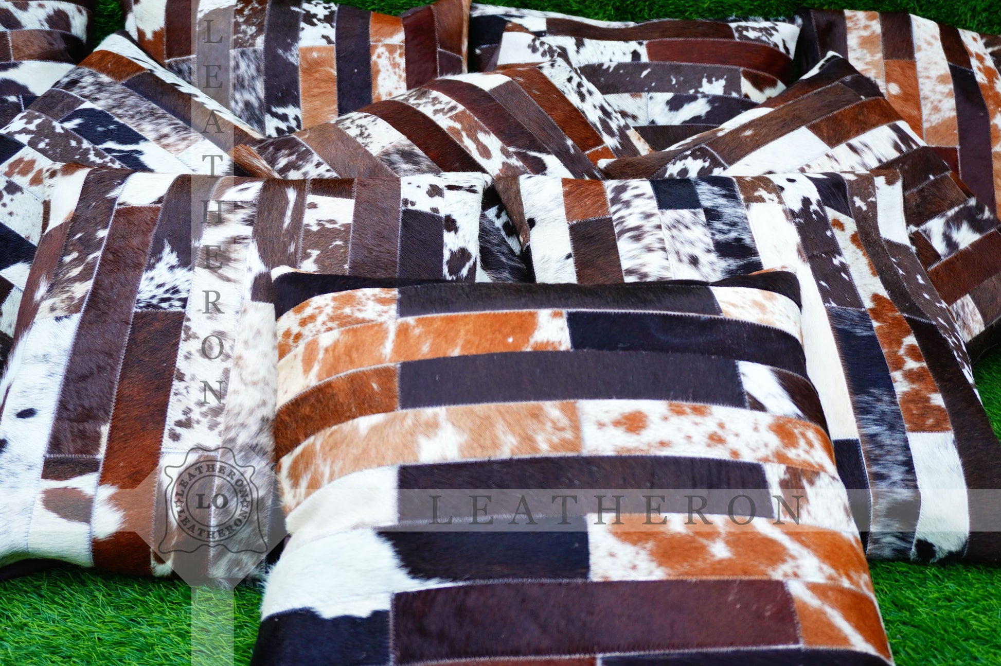 Patchwork Natural Cowhide Pillow Covers Real Cowhide Pillow Cases Handmade Hair-on- Leather Cushion Covers Cow Skin Cushion Cases | PLW214