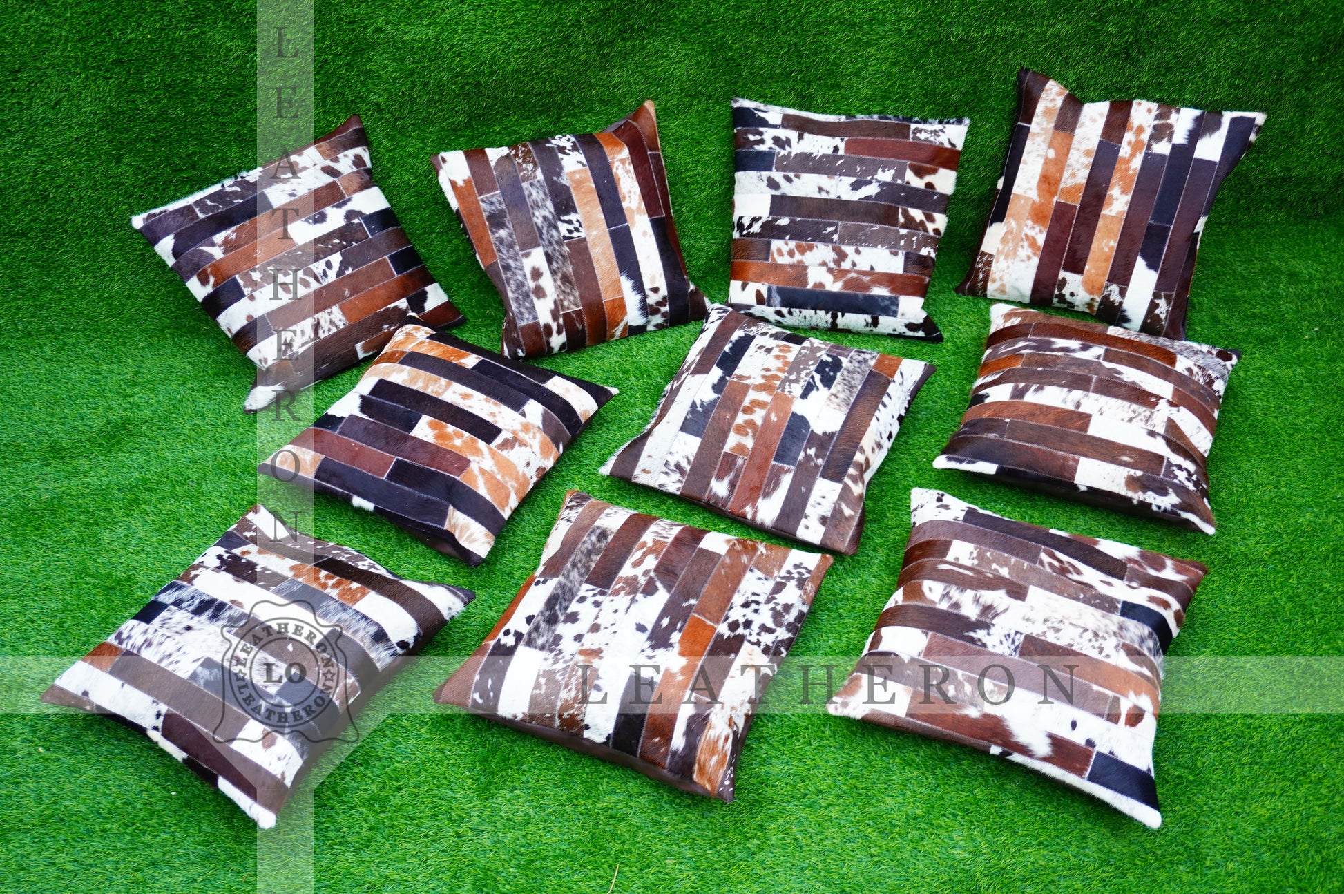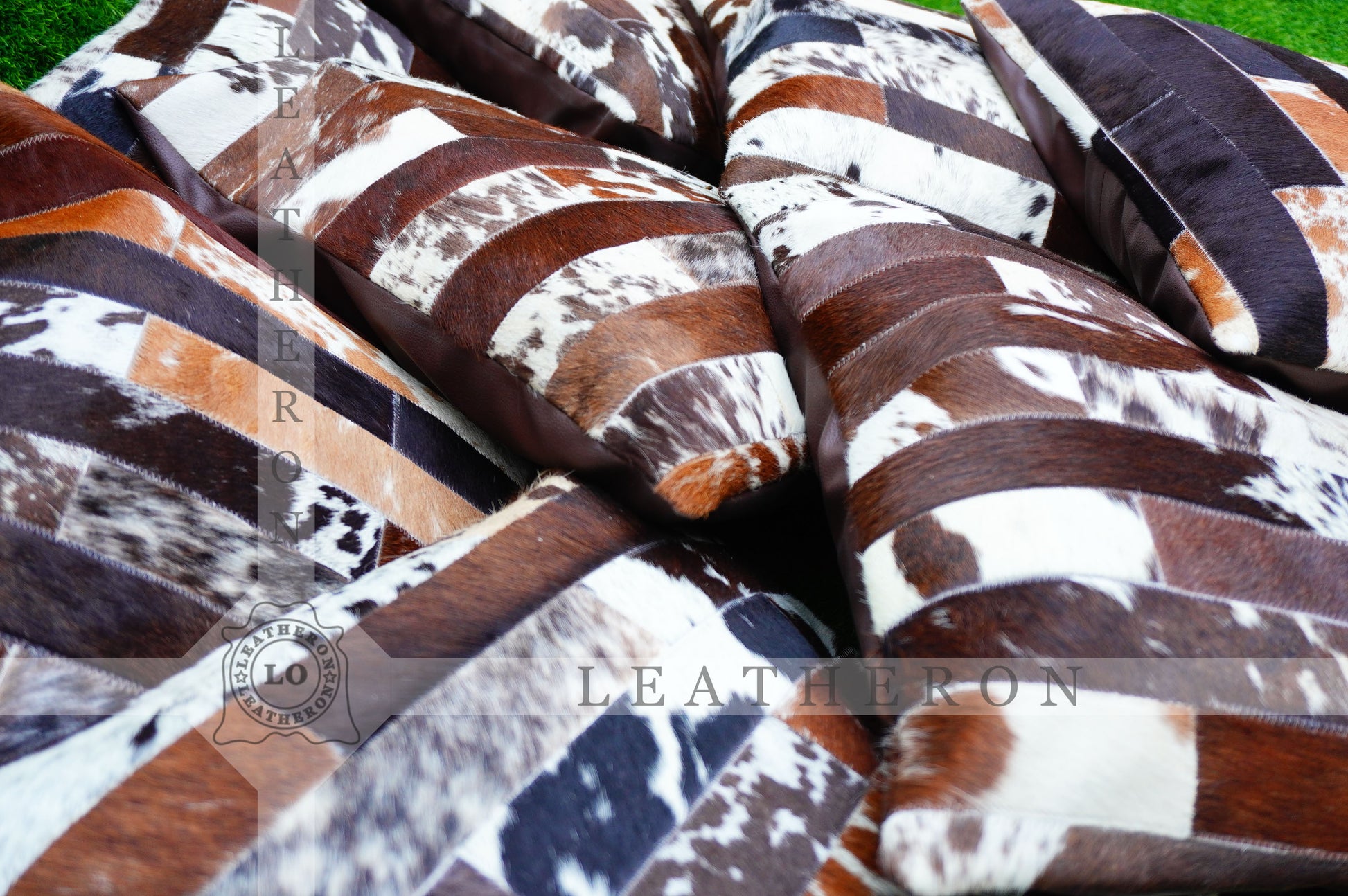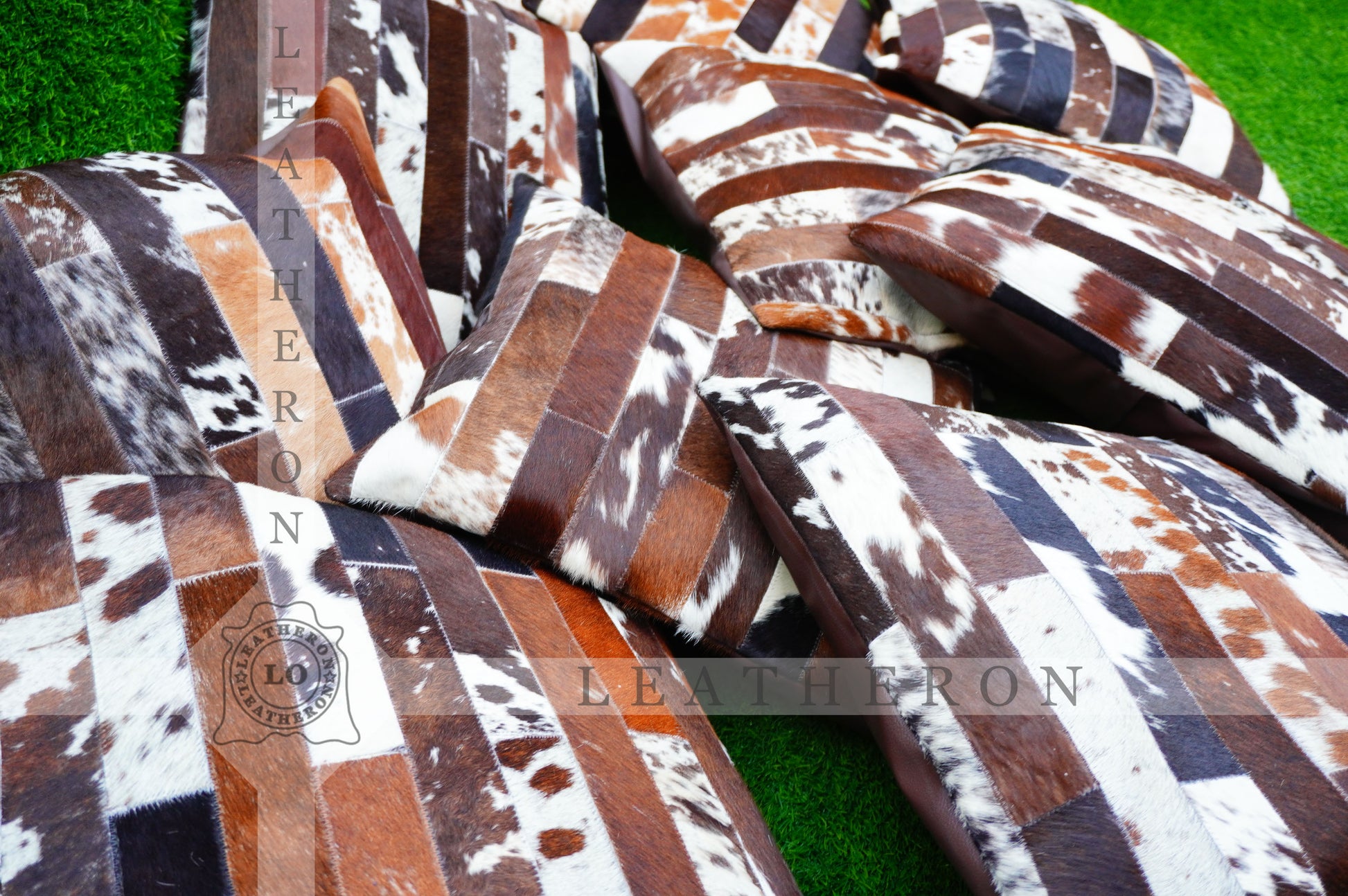 Patchwork Natural Cowhide Pillow Covers Real Cowhide Pillow Cases Handmade Hair-on- Leather Cushion Covers Cow Skin Cushion Cases | PLW214