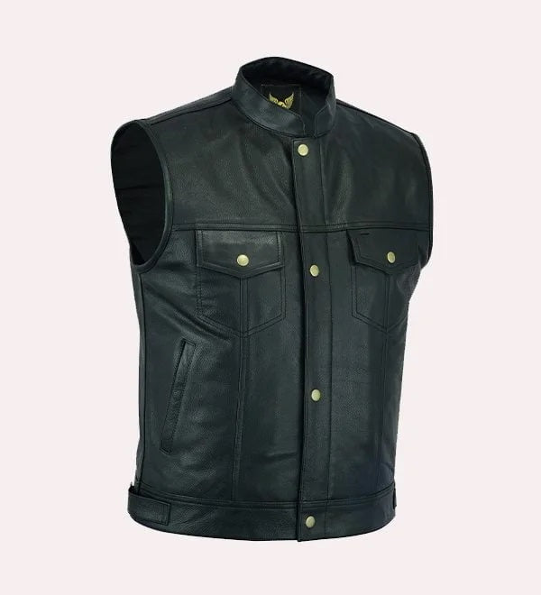 Pure Leather Biker Vest for Men - Classic Leather Moto Vest for Riders - Stylish Fit for Every Season
