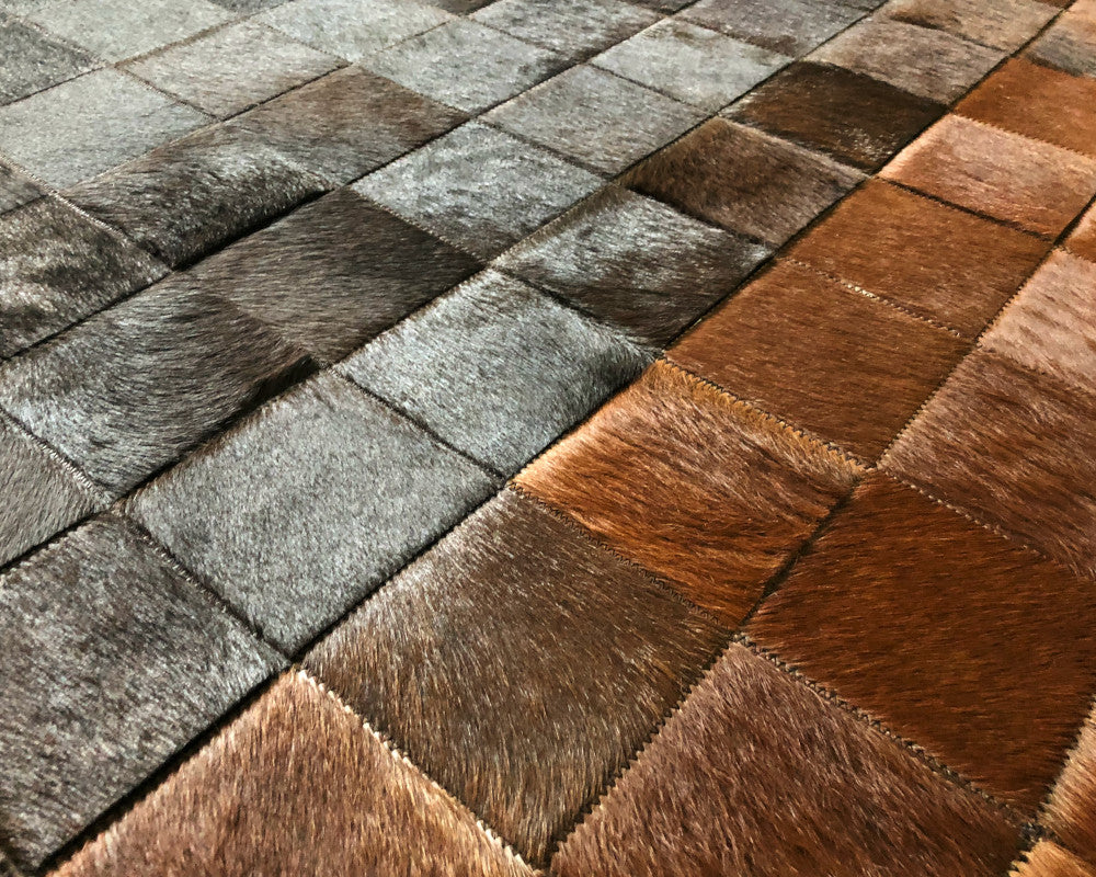 Expertly handcrafted from the premium Cowhides, these Cowhide Rugs are skillfully sewn together. These patchwork rugs present an eye-catching geometric version of the traditional cowhide. Each cowhide area rug is made up of a combination of spectacular color tones, making it ideal for any room.
