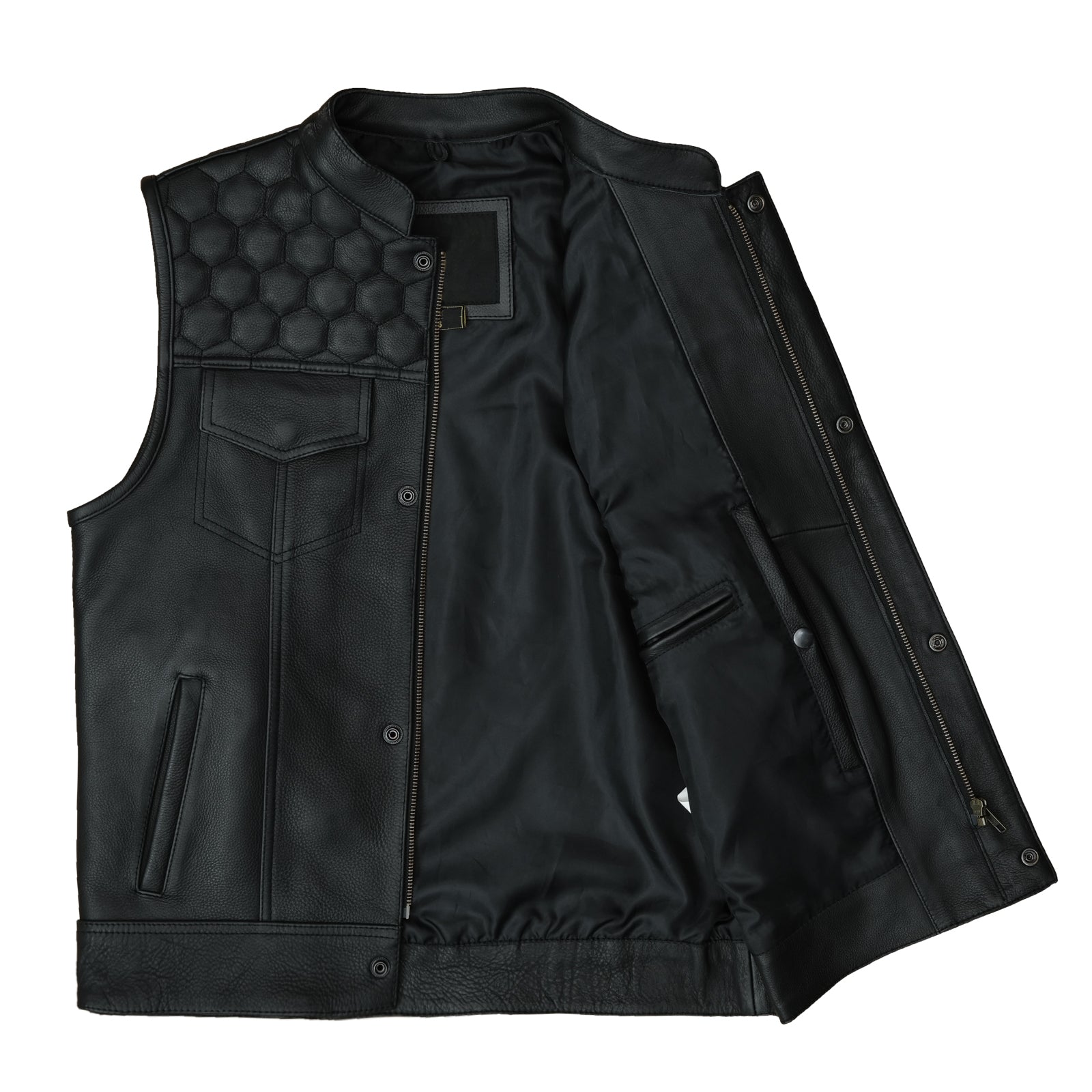 Embody the spirit of adventure with our handcrafted leather vest. Cut from rich, full-grain leather, this vest boasts a timeless design that's equal parts rugged and refined. The heavy-duty hardware ensure a secure fit, while the multiple pockets provide ample storage for your essentials. Whether you're a seasoned biker or just a fan of the leather lifestyle, this vest is the perfect companion for your next adventure.