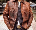 Men's Cafe Racer Brown Leather Jacket - Retro Style Distressed Brown Leather Jacket - Vintage Inspired Motorcycle Jacket