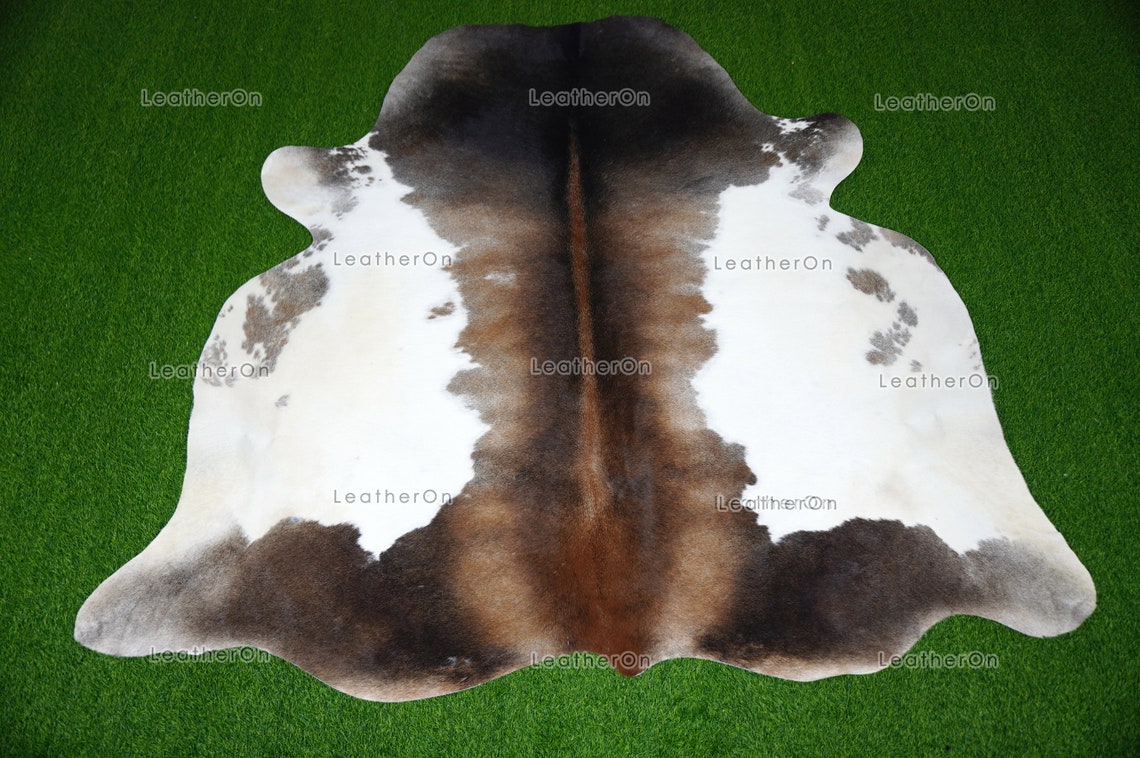 Tricolor XLARGE (6 X 6 ft.) Exact As Photo Cowhide Rug | 100% Natural Cowhide Area Rug | Real Hair-on Leather Cowhide Rug | C707
