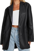 Women Winter Leather Coat - Premium Genuine Leather Trench Coat Jacket, Long Sleeve - Oversized Outfits Fashion for Girls