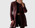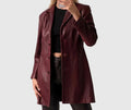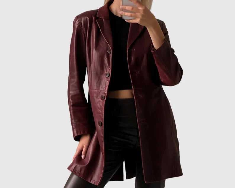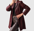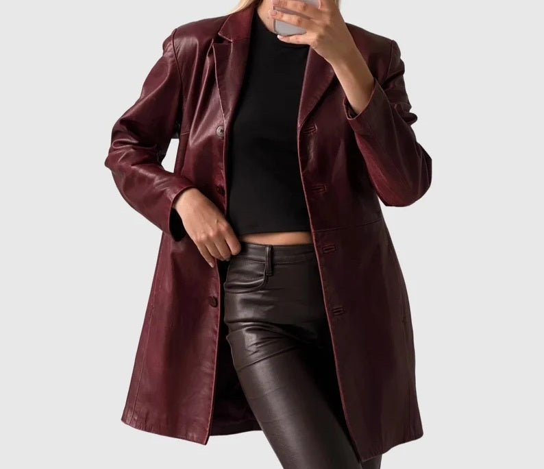 Women's Genuine Leather Long Coat - Burgundy Leather Trench for Girls - Luxury Leather Duster Coat