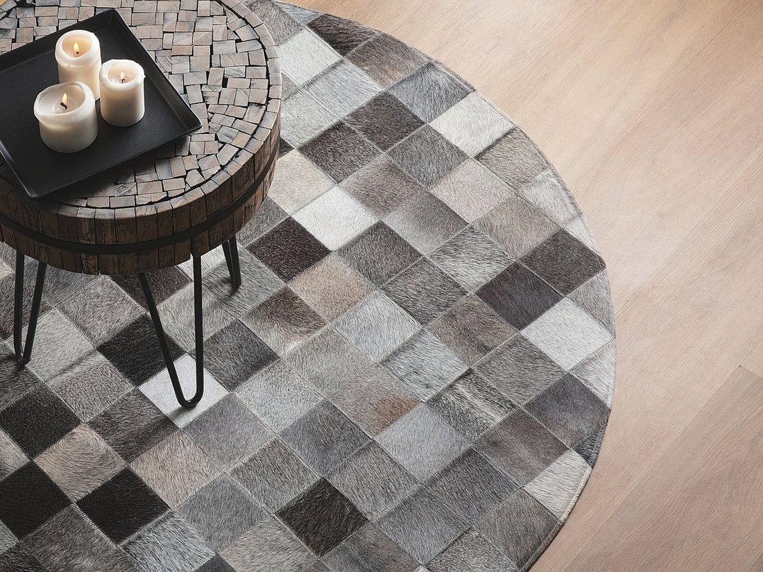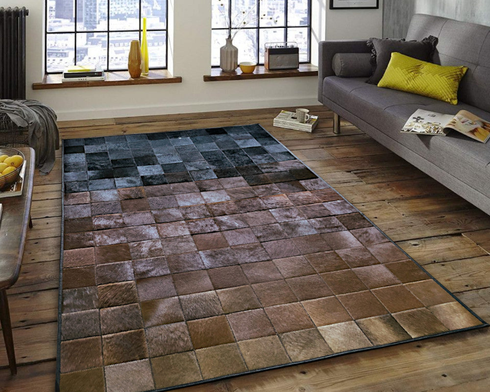 Leather Luxury: Genuine Cowhide Patchwork Area Rug | Hair on Leather Cowhide Carpet | PR110