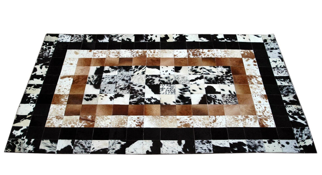 Genuine 100% Cowhide Leather Patchwork Rug, Hand-Stitched with Love | Hair on Leather Cowhide Carpet | PR106