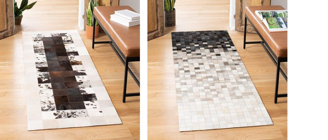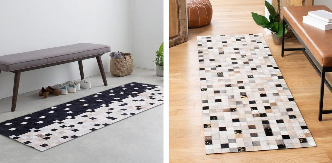 COWHIDE Patchwork Carpet For Interior/Home/Office Decor | Leather Floor Area Rug and Runner for Hallway Entryway | PR186