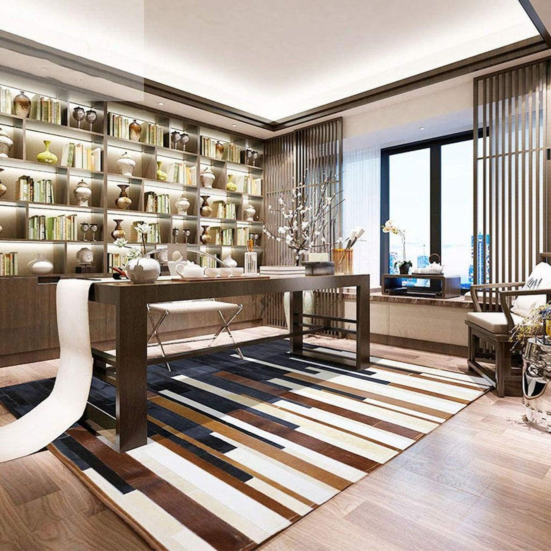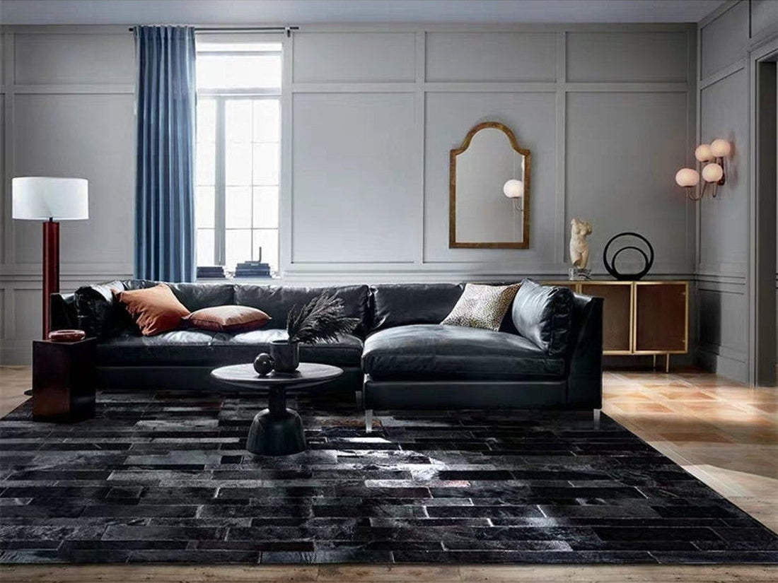 HANDMADE 100% Natural COWHIDE RUG | Genuine Leather Patchwork Carpet for Luxurious Living | PR177