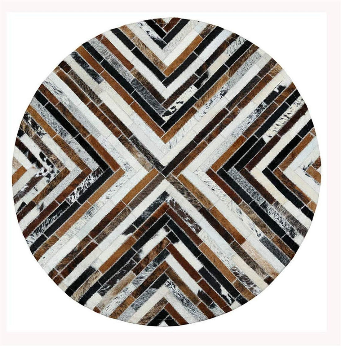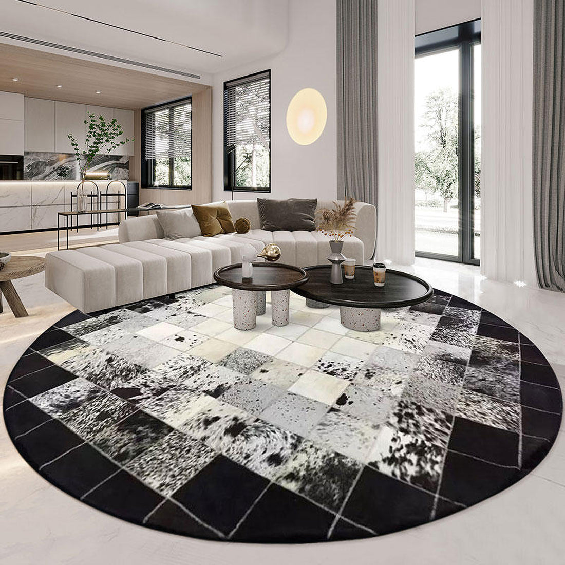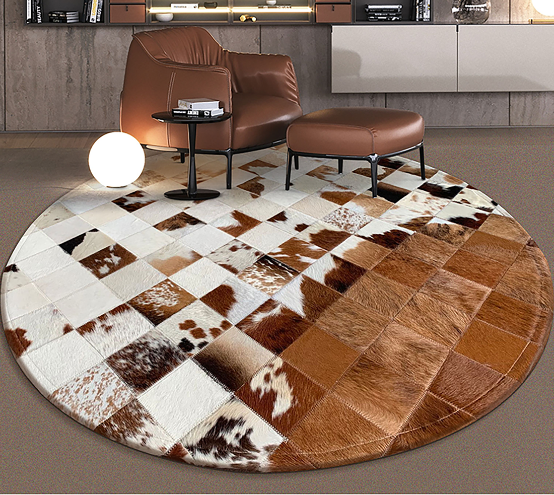 Luxury Handmade Hair-On Cowhide Patchwork Round Carpet